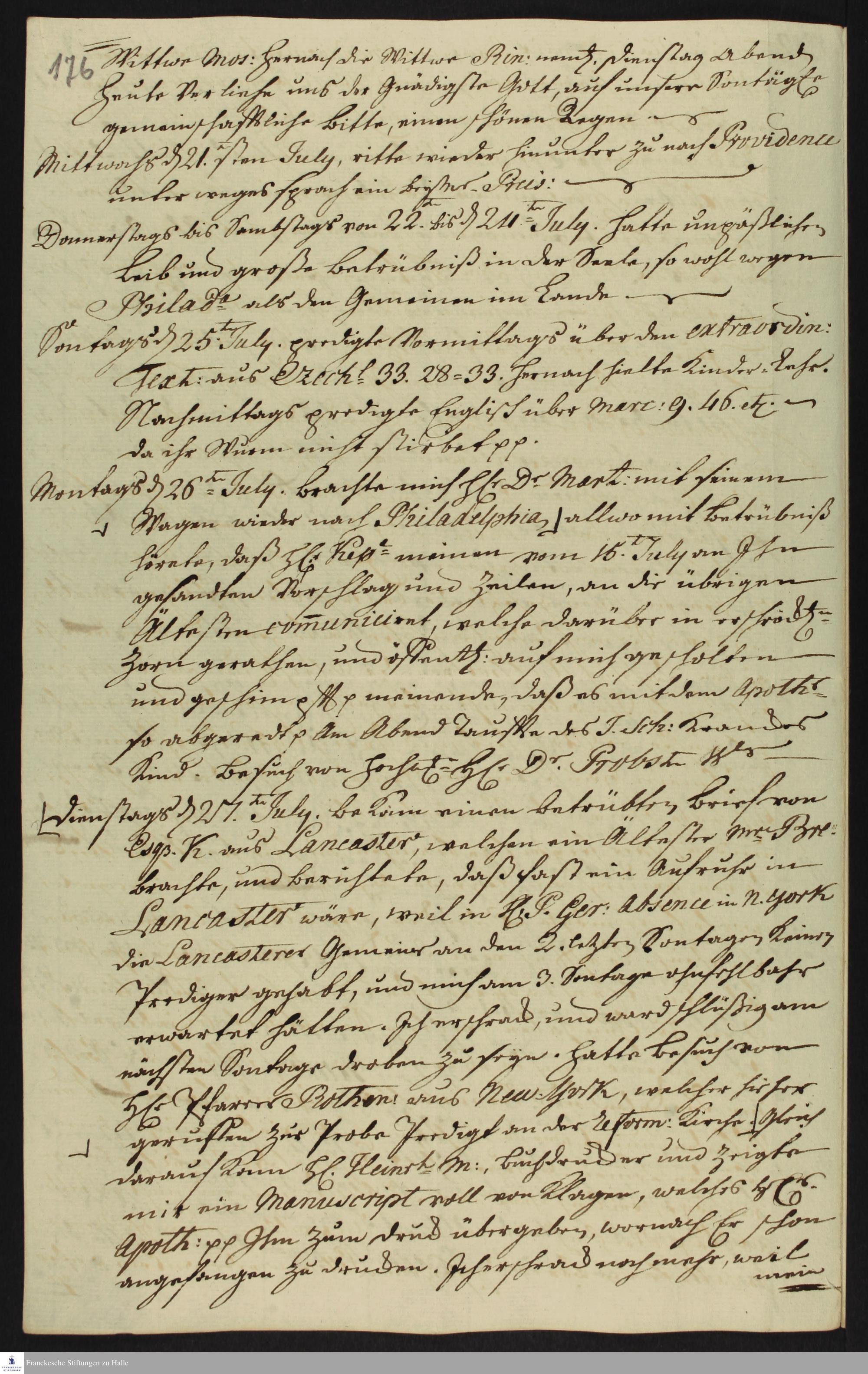 Auszug aus dem Tagebuch von Heinrich Melchior Mühlenberg.