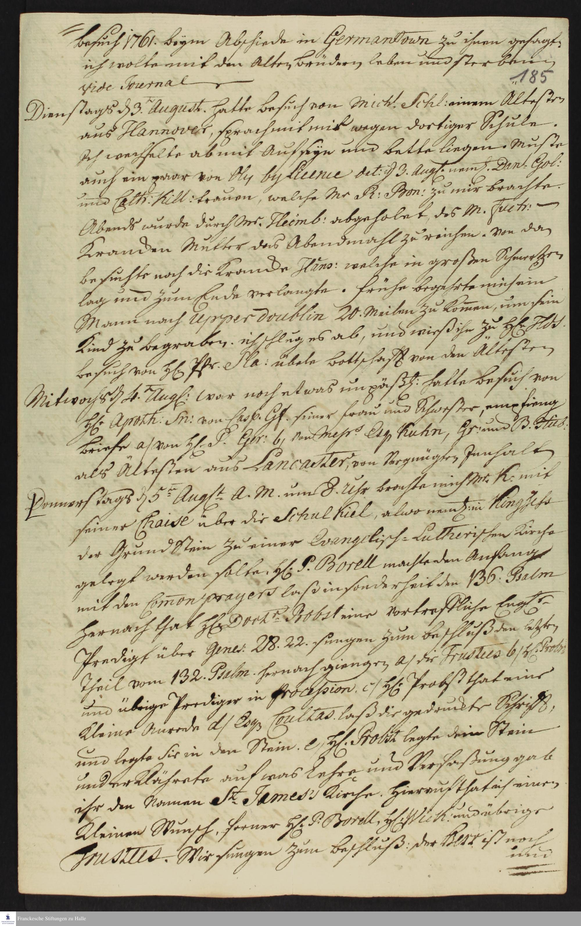 Auszug aus dem Tagebuch von Heinrich Melchior Mühlenberg.