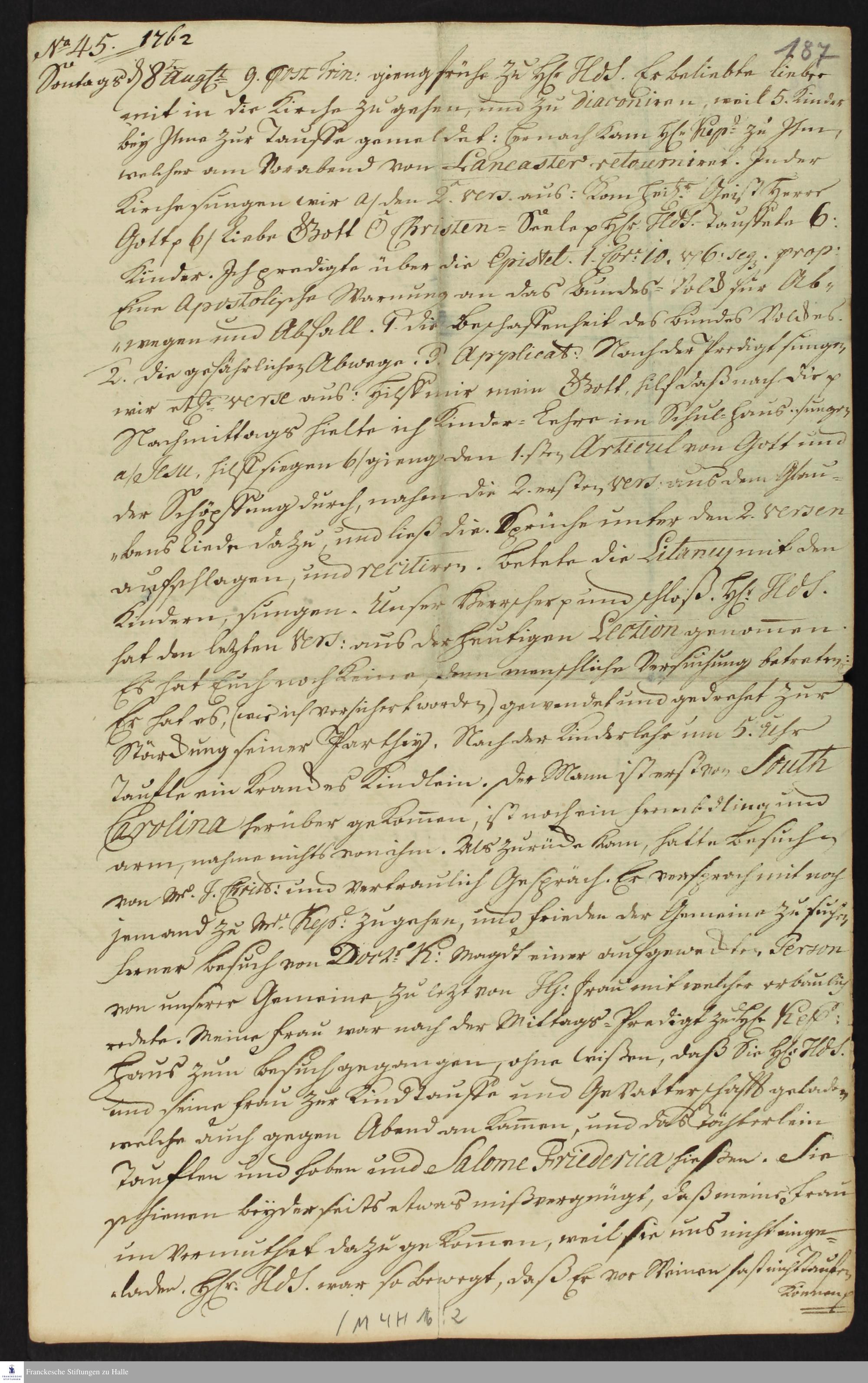 Auszug aus dem Tagebuch von Heinrich Melchior Mühlenberg.