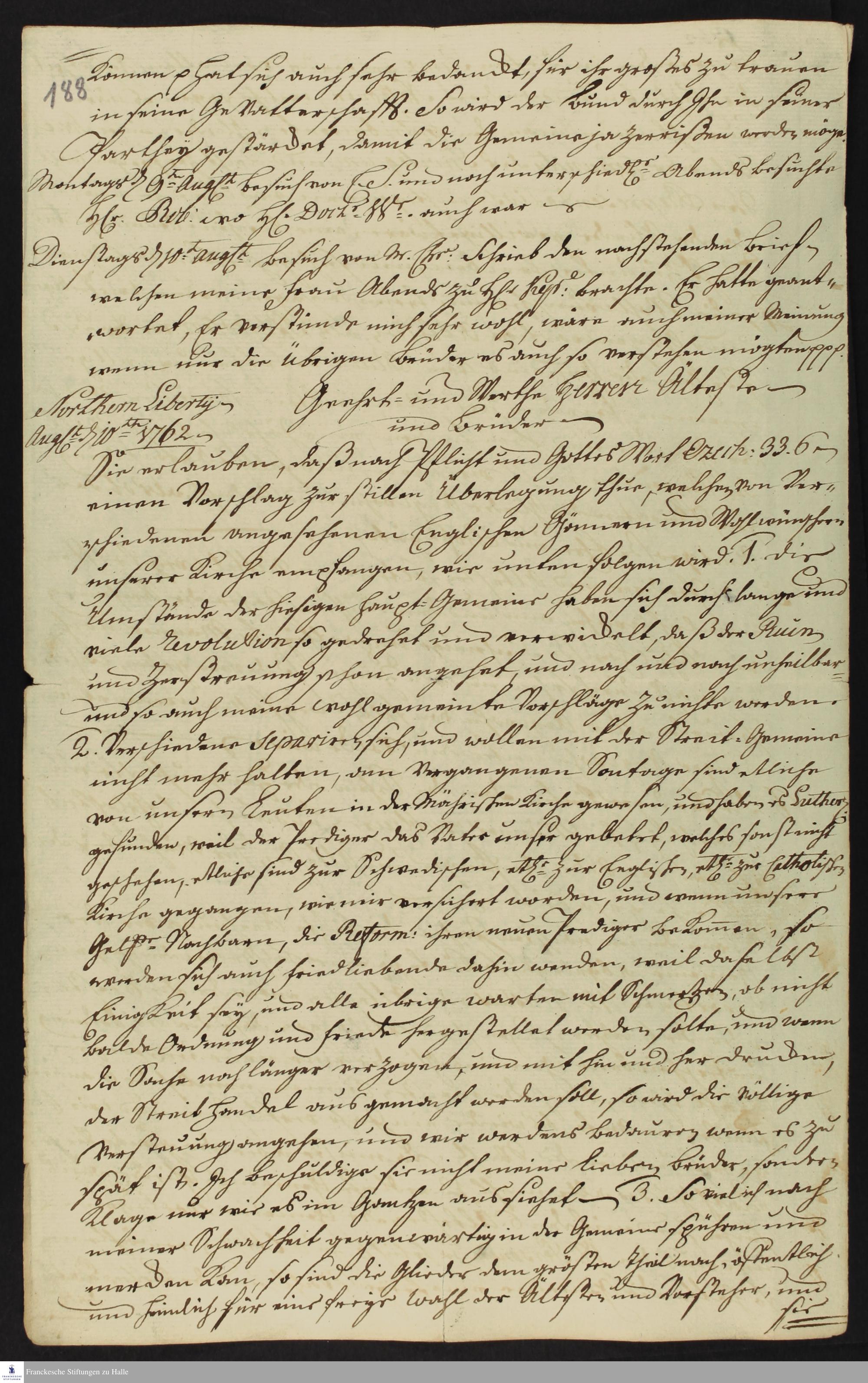 Auszug aus dem Tagebuch von Heinrich Melchior Mühlenberg.