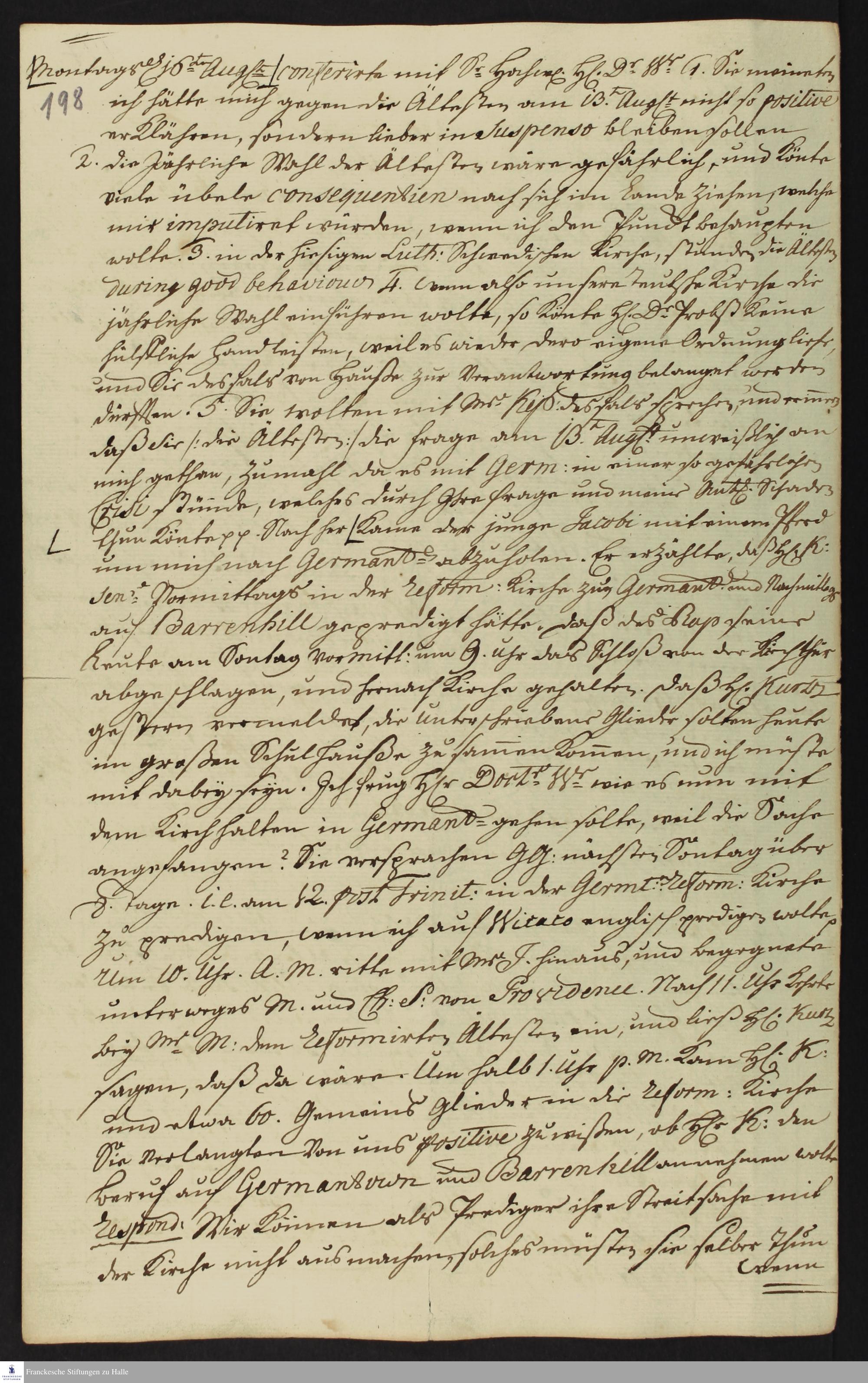Auszug aus dem Tagebuch von Heinrich Melchior Mühlenberg.
