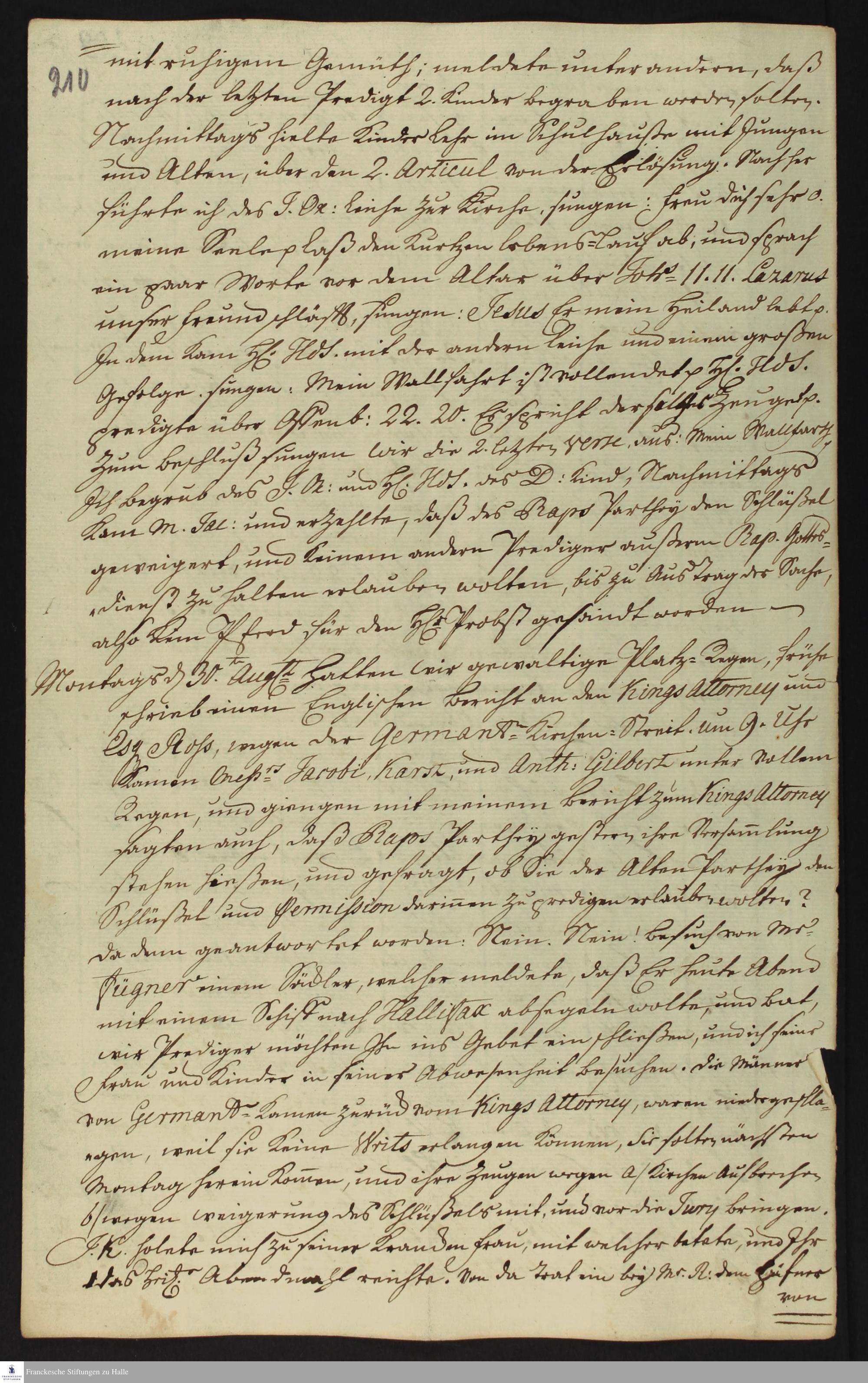 Auszug aus dem Tagebuch von Heinrich Melchior Mühlenberg.