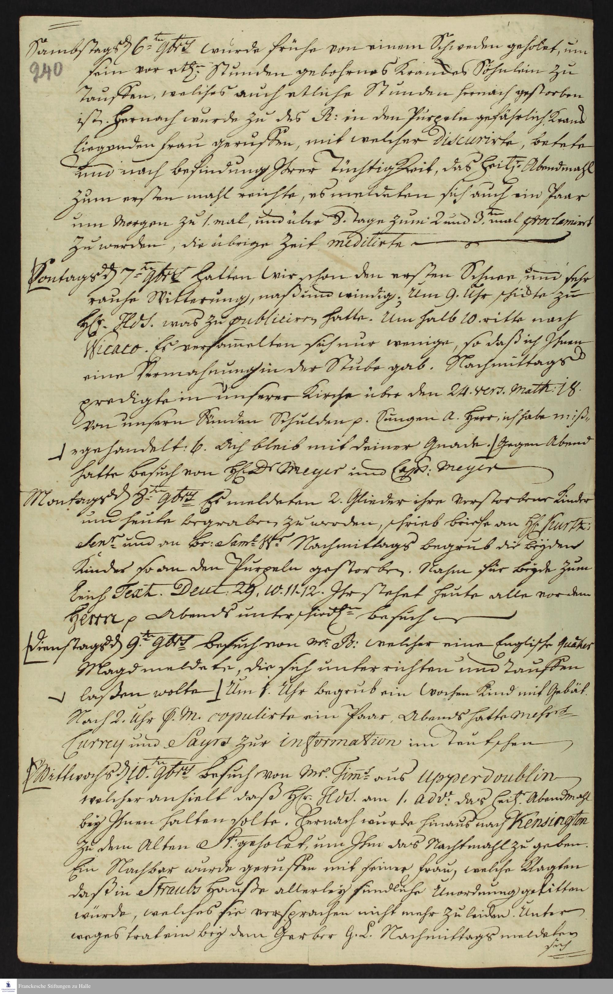 Auszug aus dem Tagebuch von Heinrich Melchior Mühlenberg.