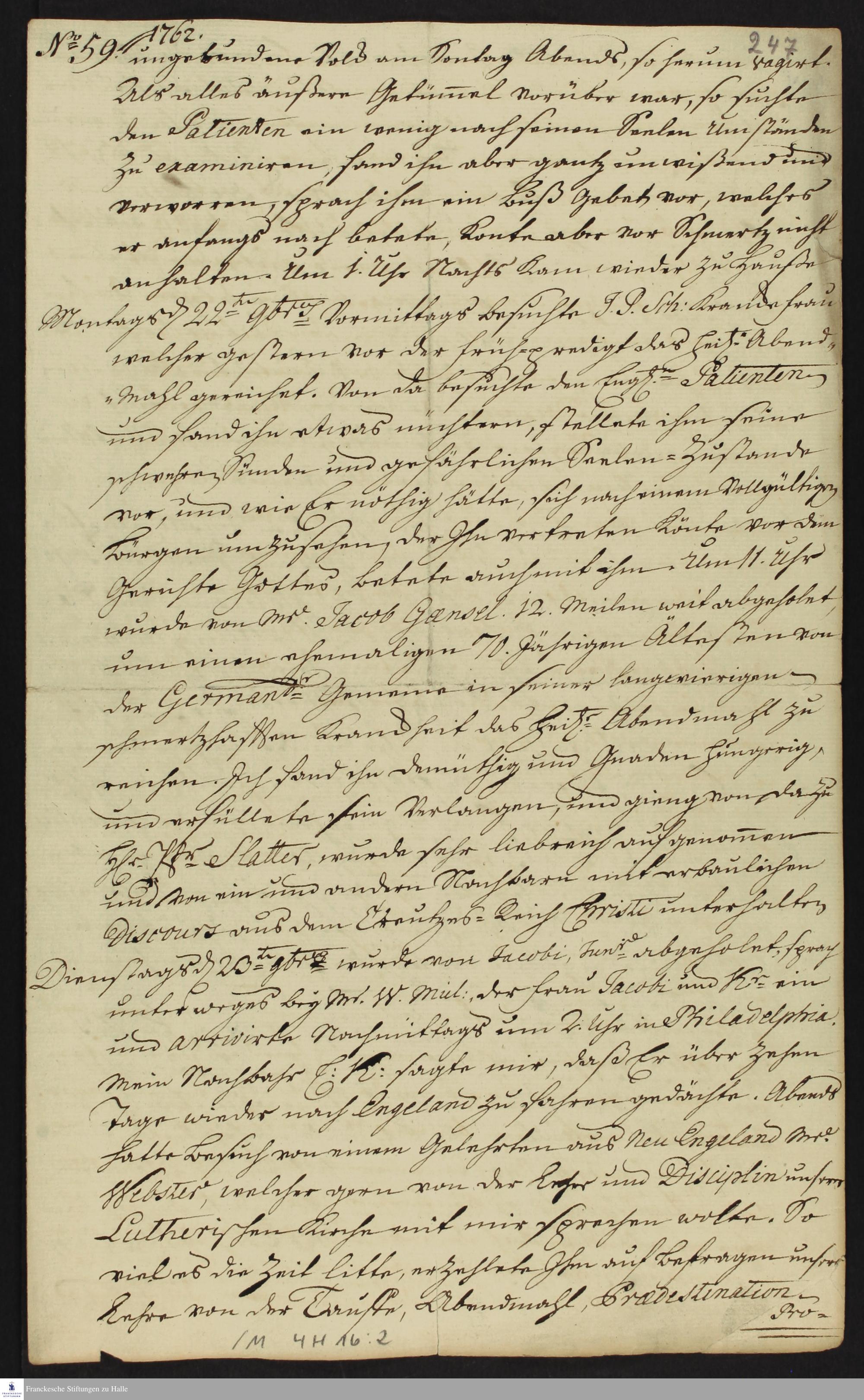 Auszug aus dem Tagebuch von Heinrich Melchior Mühlenberg.