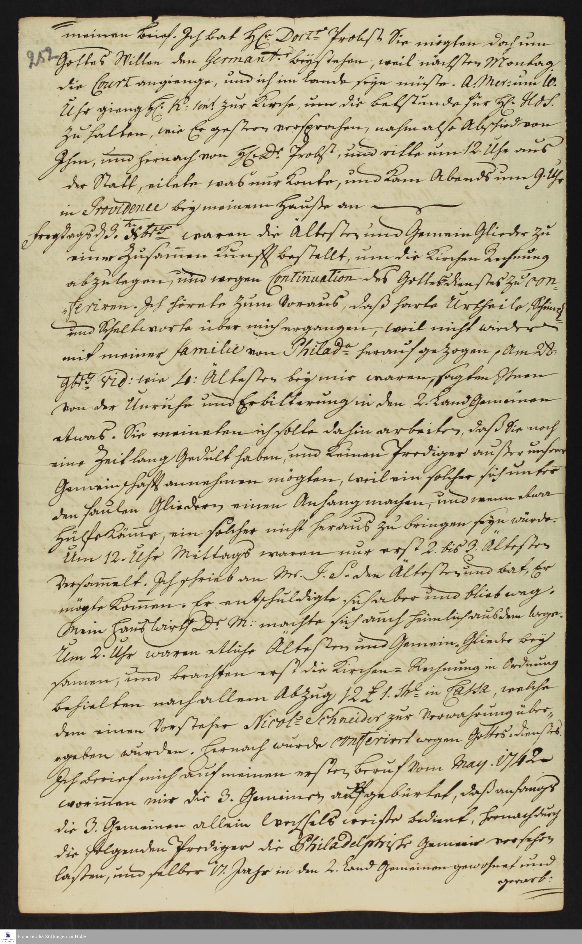 Auszug aus dem Tagebuch von Heinrich Melchior Mühlenberg.