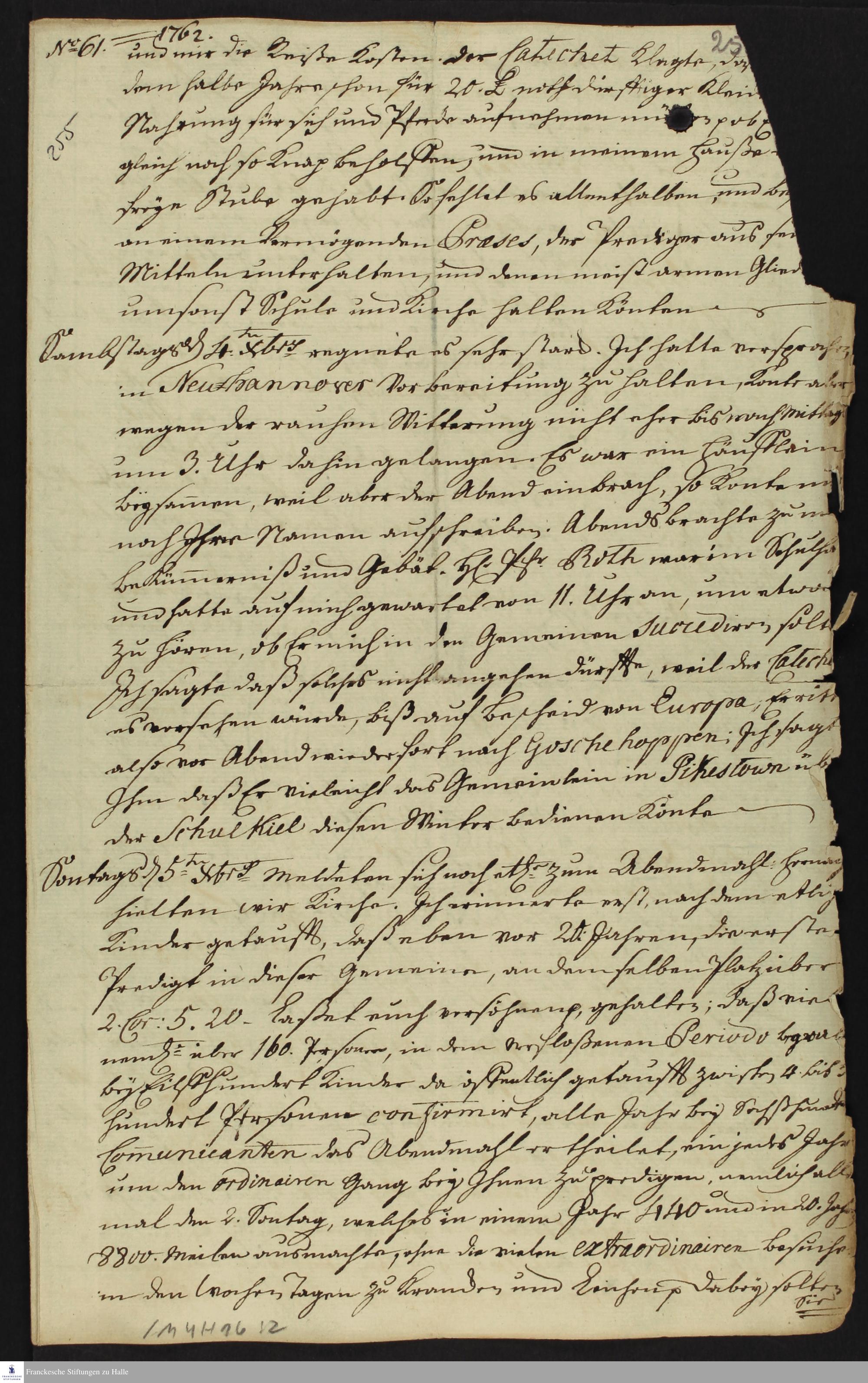 Auszug aus dem Tagebuch von Heinrich Melchior Mühlenberg.