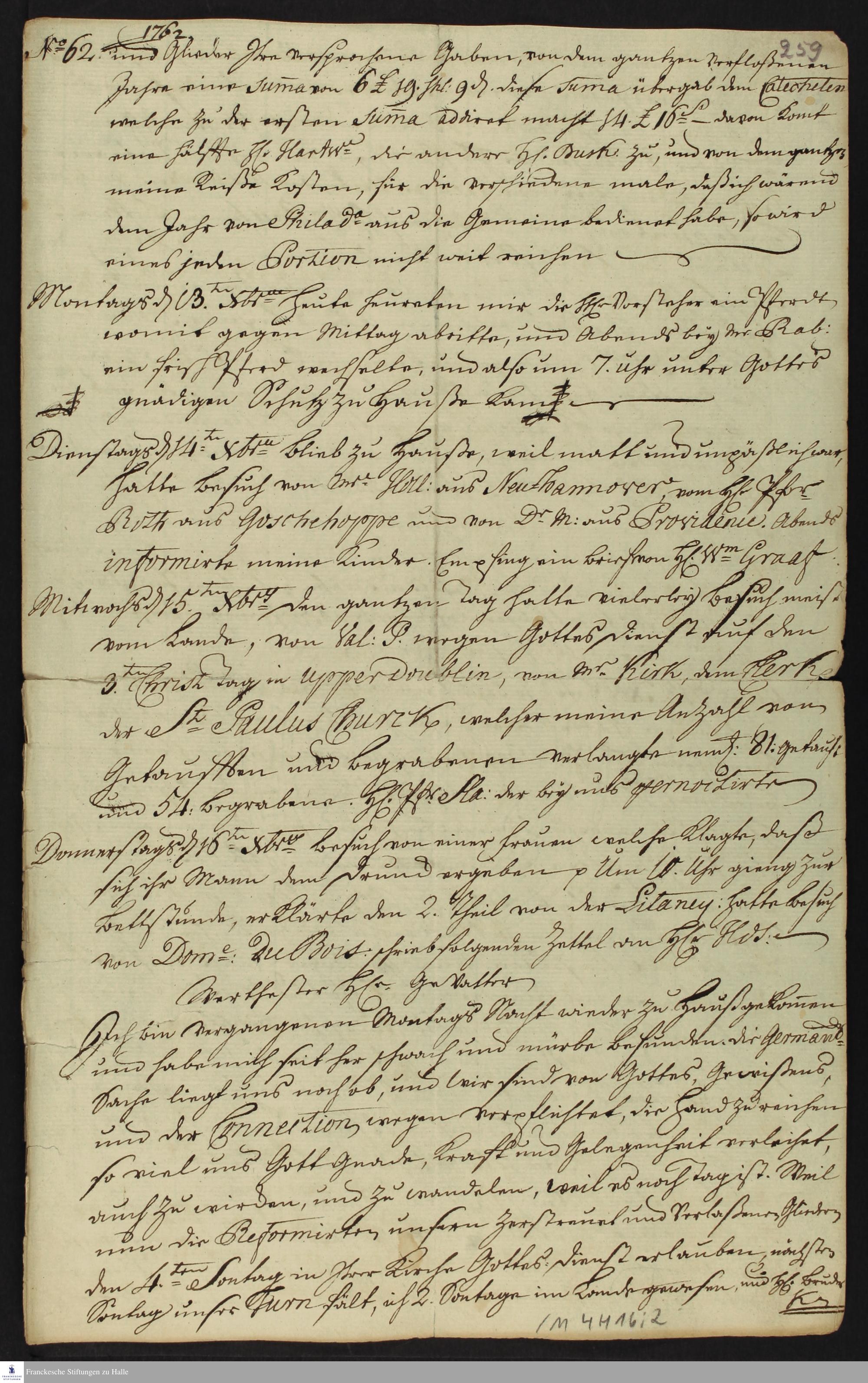 Auszug aus dem Tagebuch von Heinrich Melchior Mühlenberg.