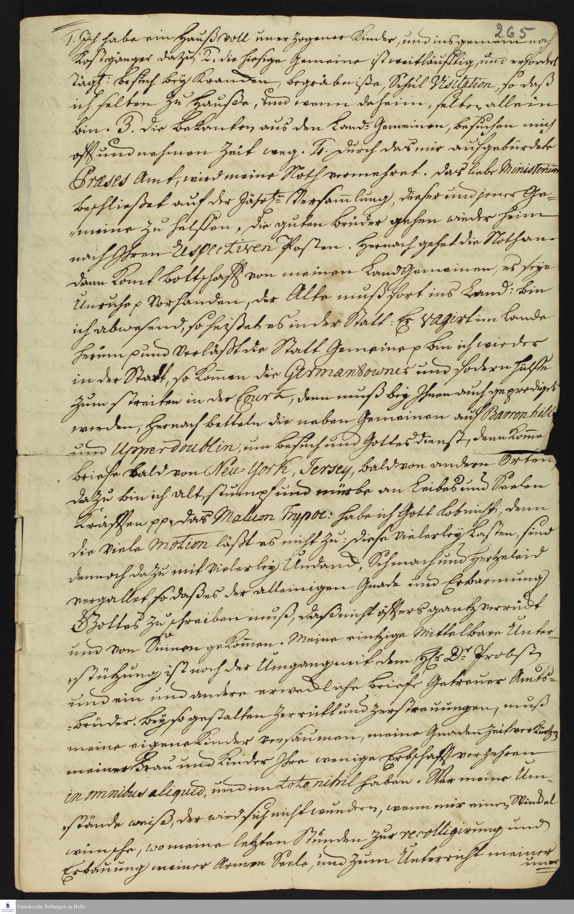 Auszug aus dem Tagebuch von Heinrich Melchior Mühlenberg.