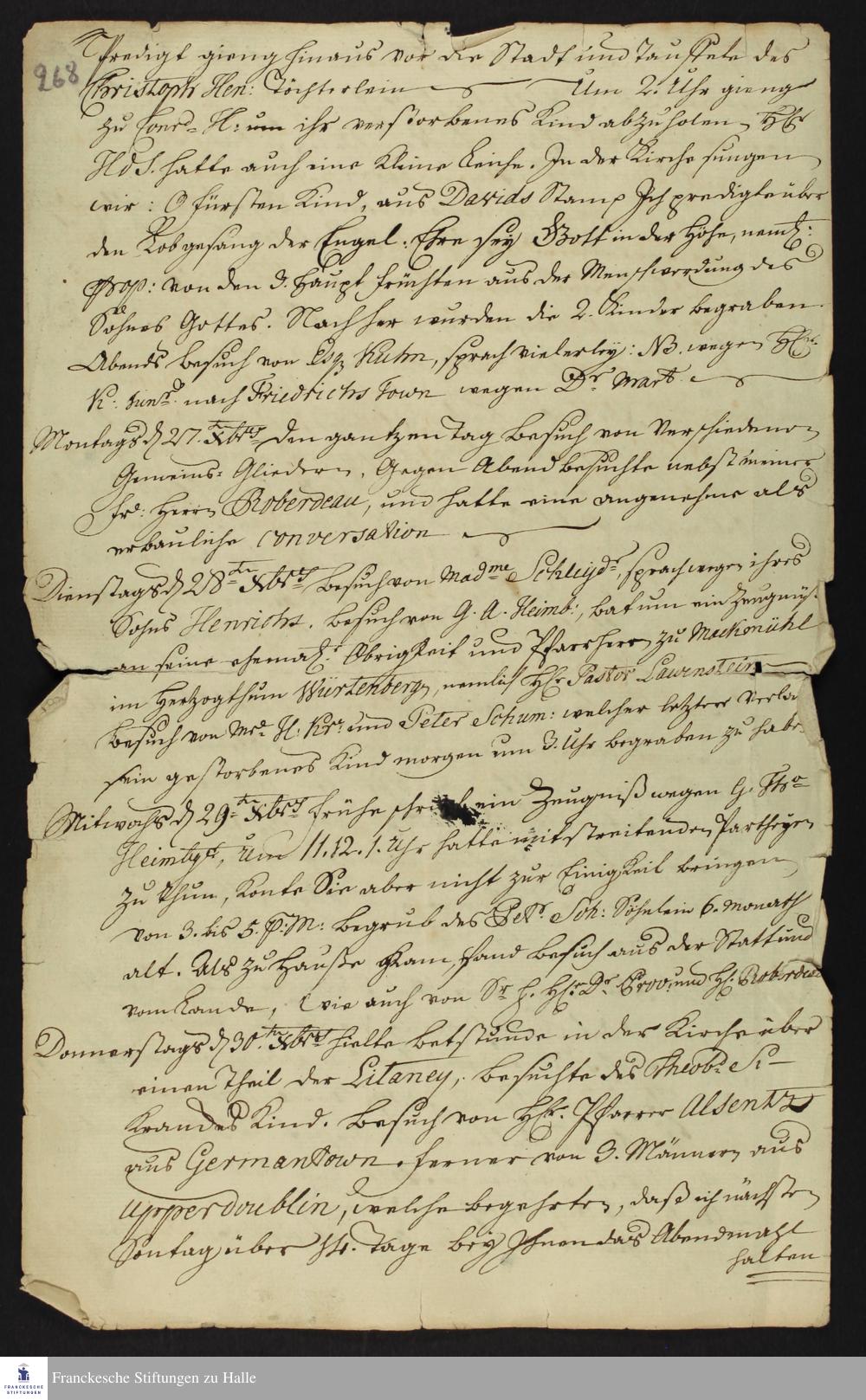 Auszug aus dem Tagebuch von Heinrich Melchior Mühlenberg.