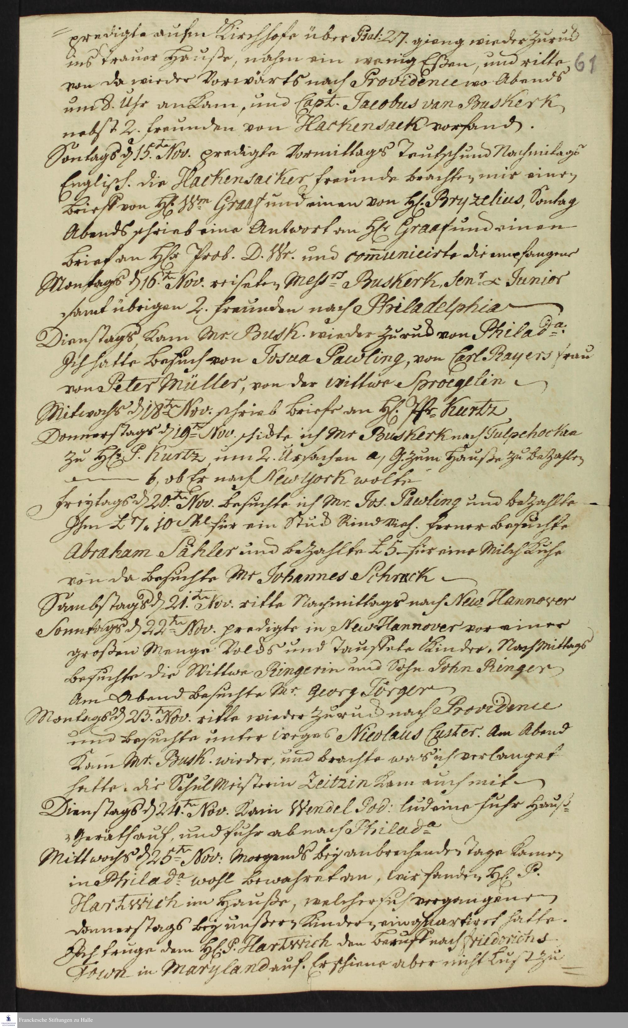 Auszug aus dem Tagebuch von Heinrich Melchior Mühlenberg.