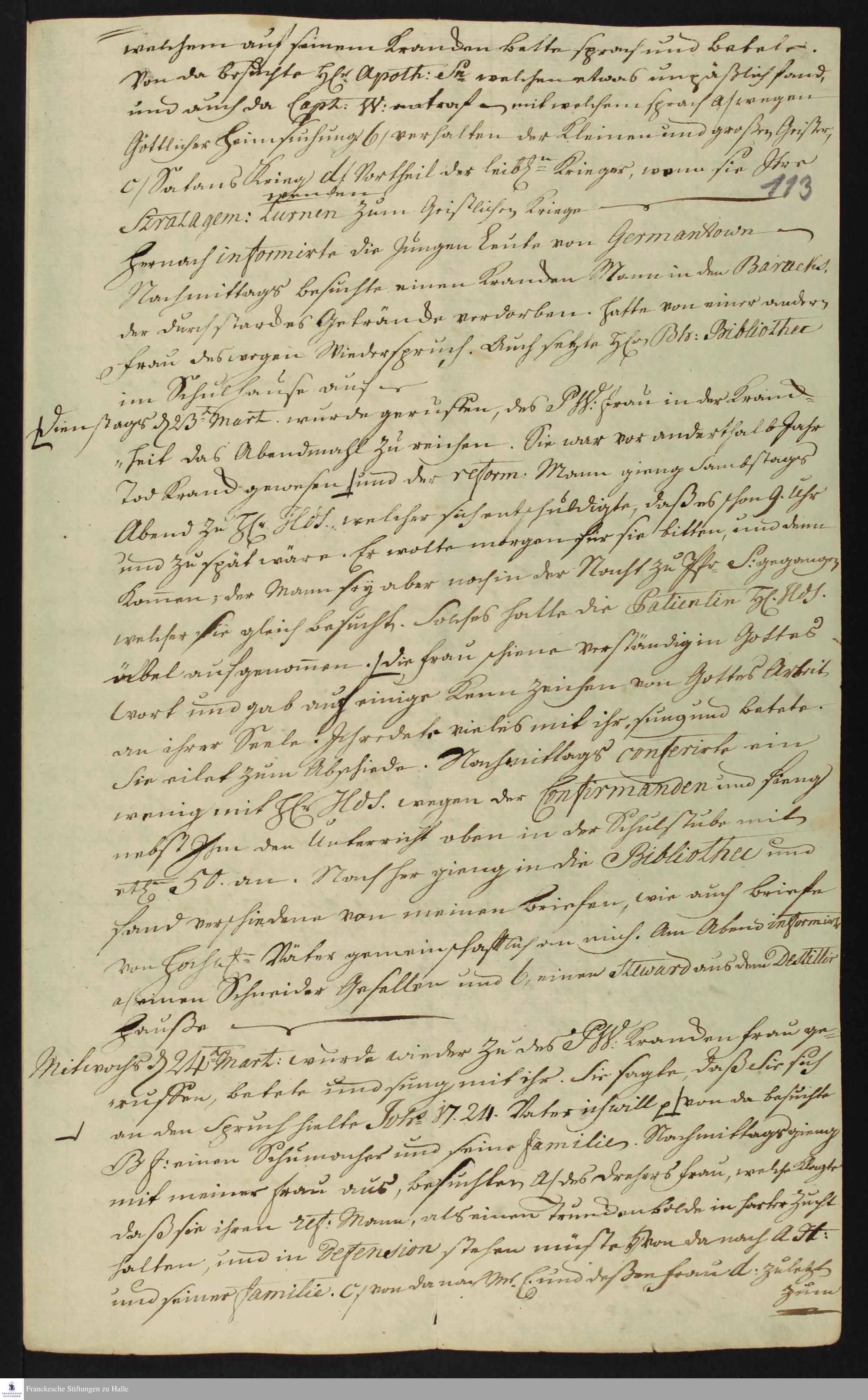 Auszug aus dem Tagebuch von Heinrich Melchior Mühlenberg.