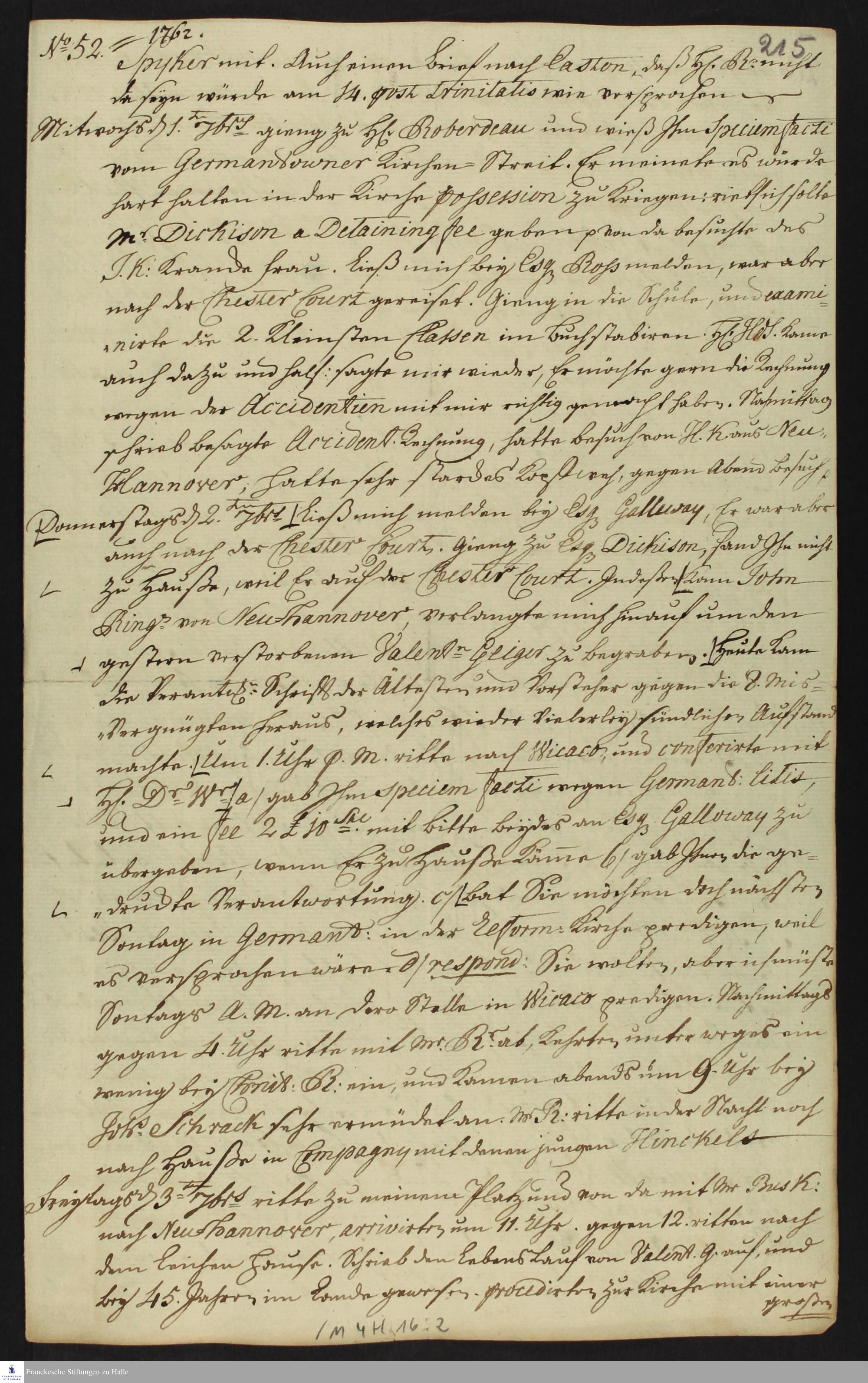Auszug aus dem Tagebuch von Heinrich Melchior Mühlenberg.