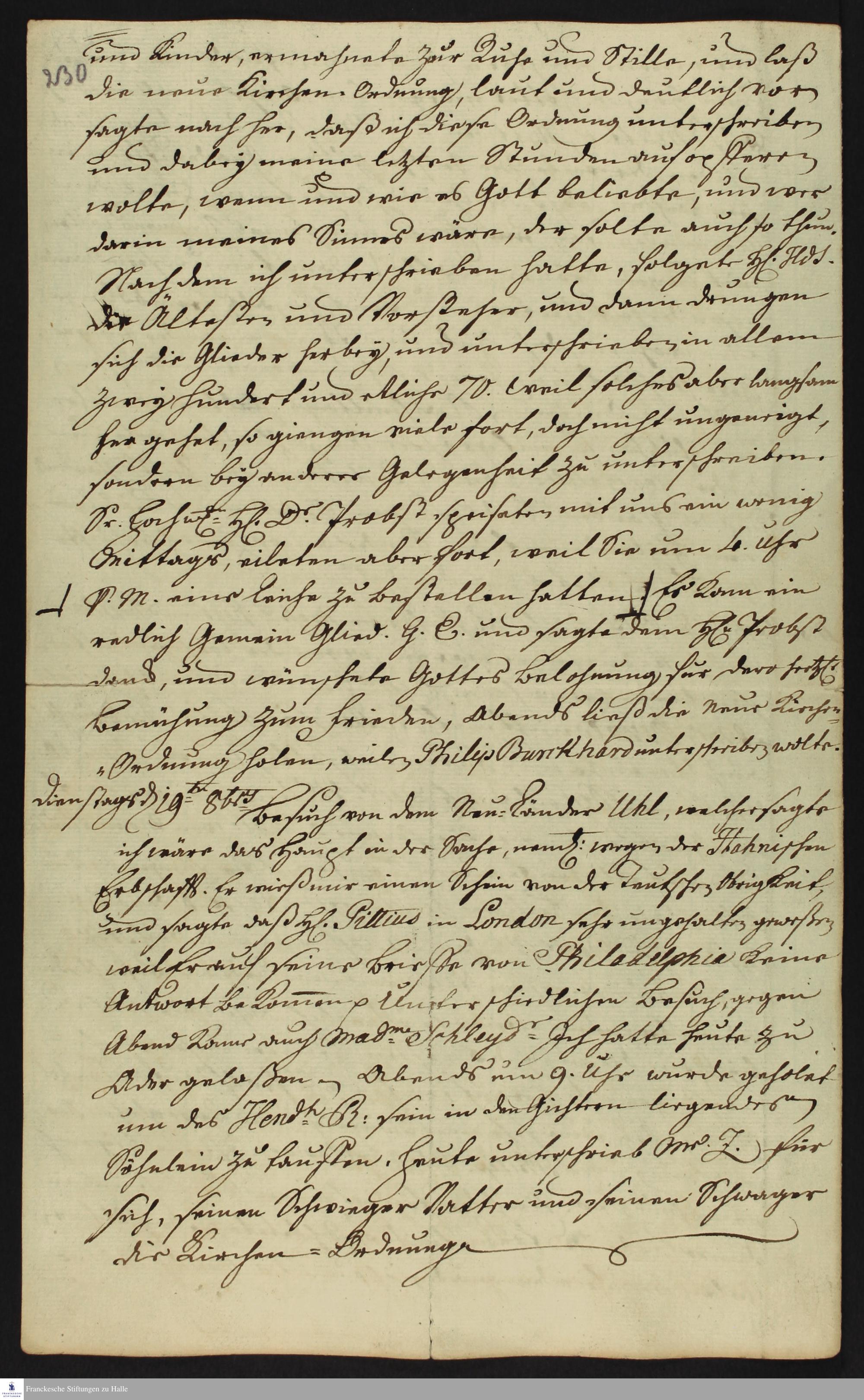 Auszug aus dem Tagebuch von Heinrich Melchior Mühlenberg.