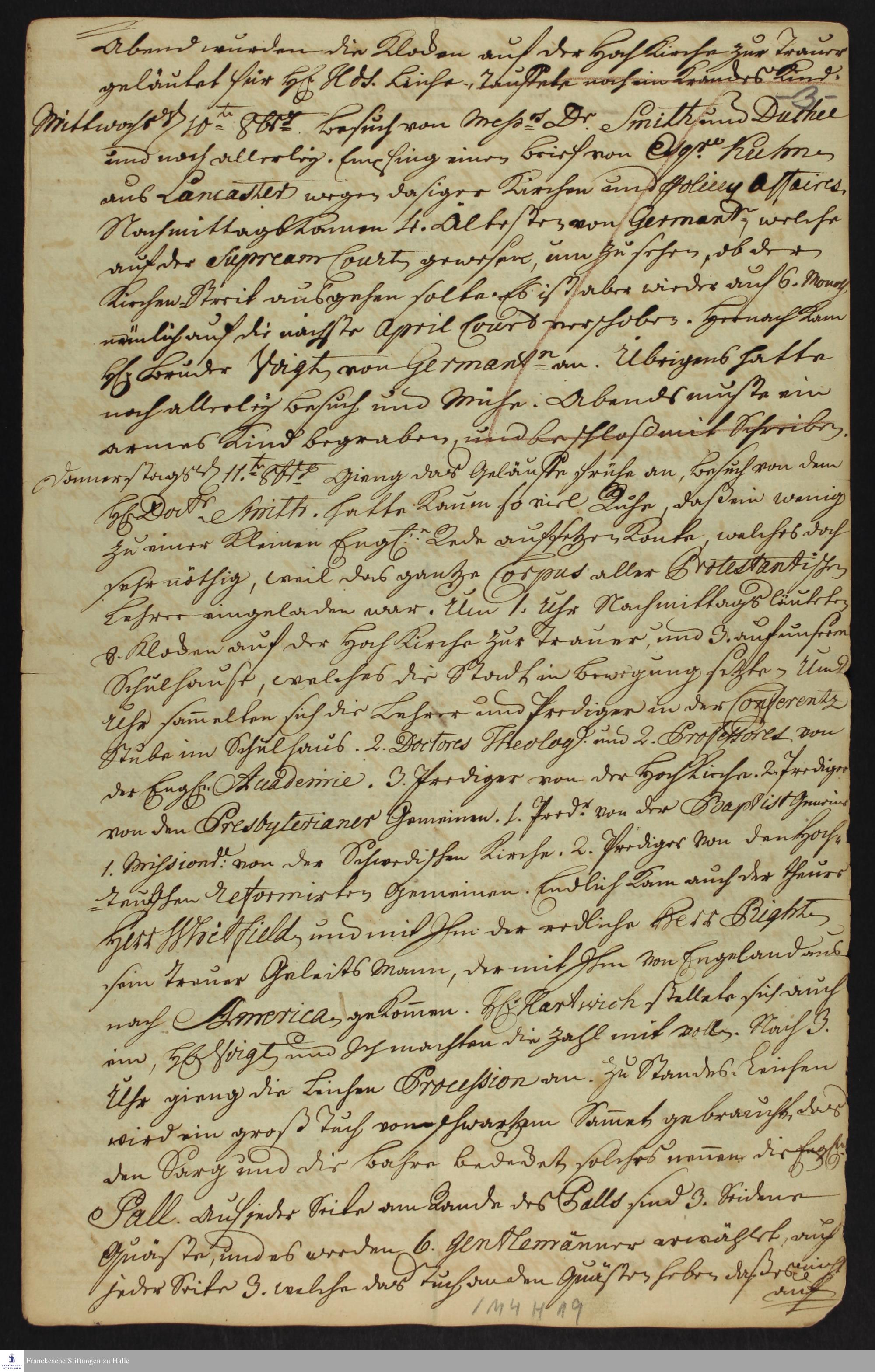 Tagebuch von Heinrich Melchior Mühlenberg.