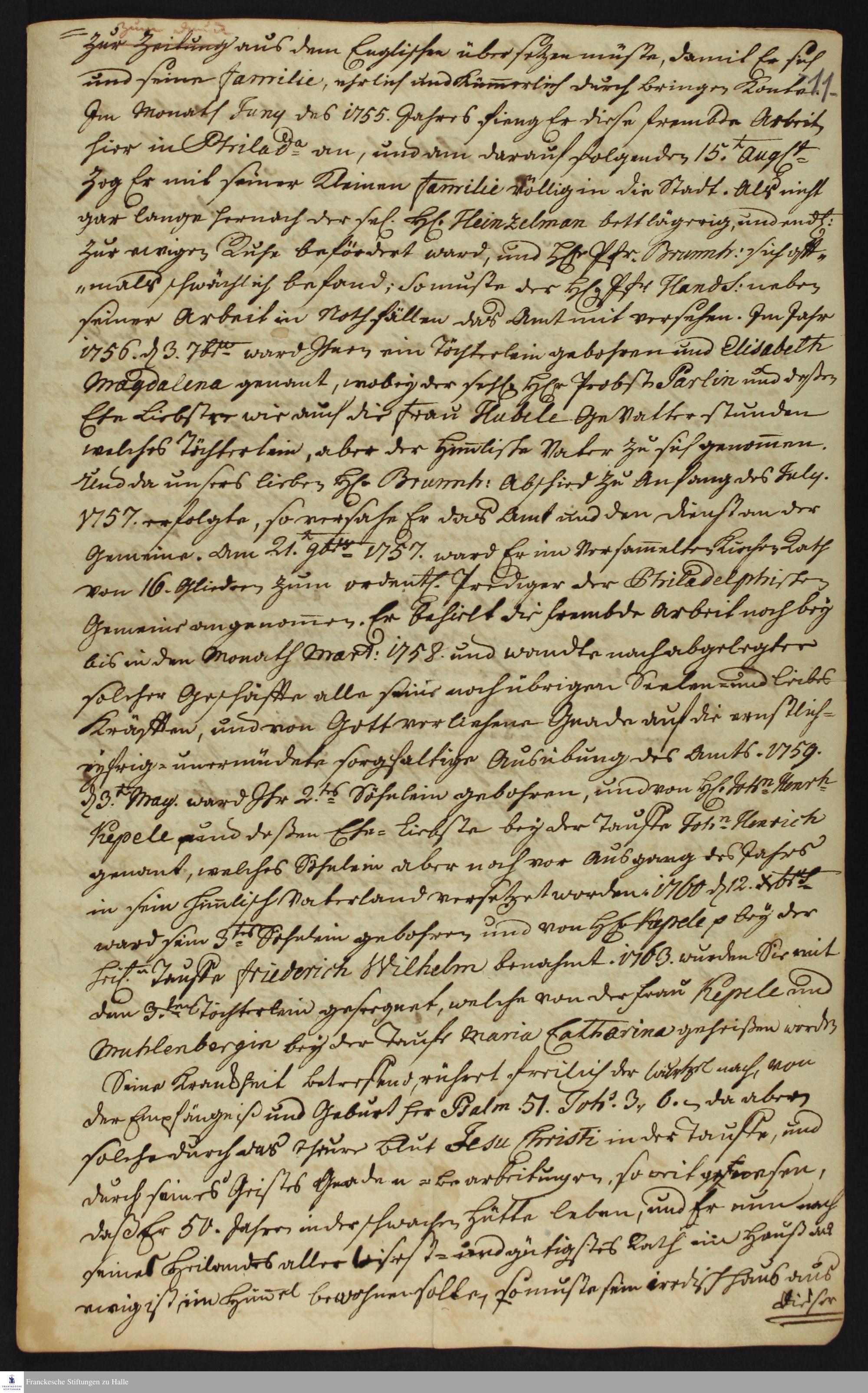 Tagebuch von Heinrich Melchior Mühlenberg.