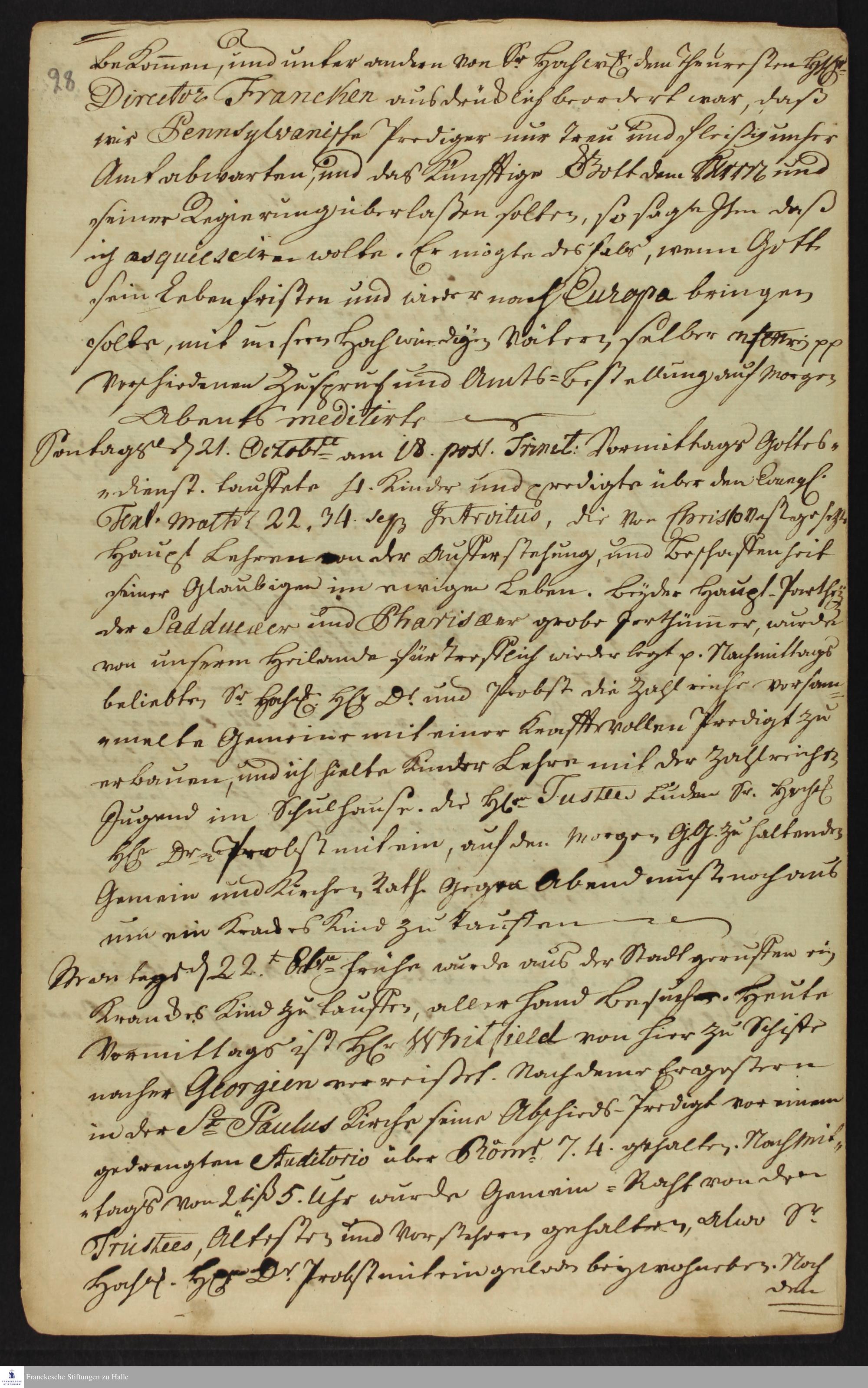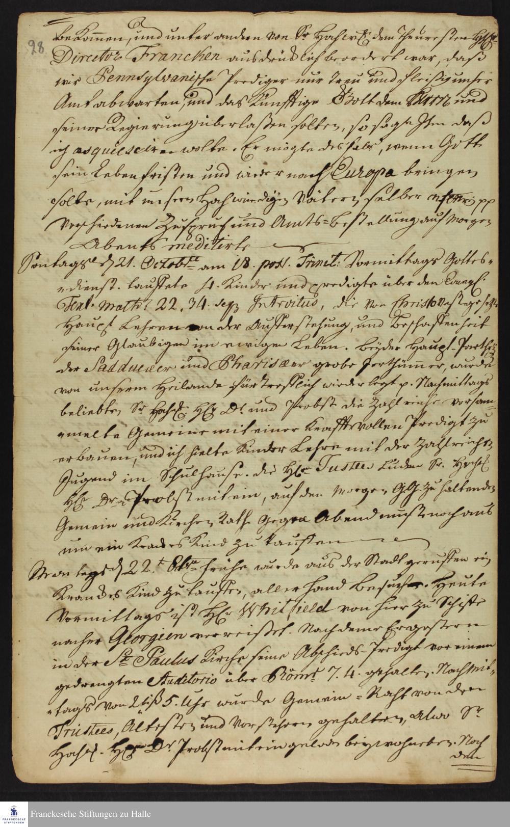 Tagebuch von Heinrich Melchior Mühlenberg.