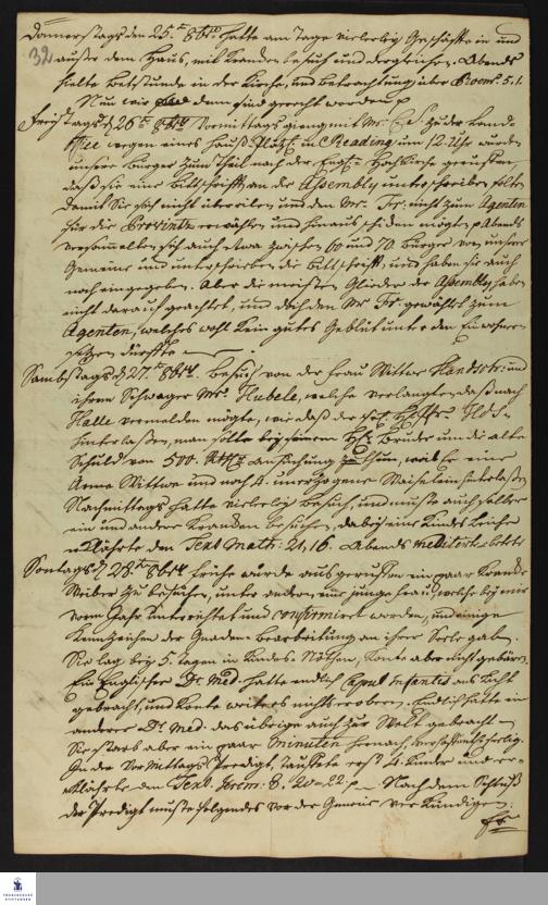 Tagebuch von Heinrich Melchior Mühlenberg.