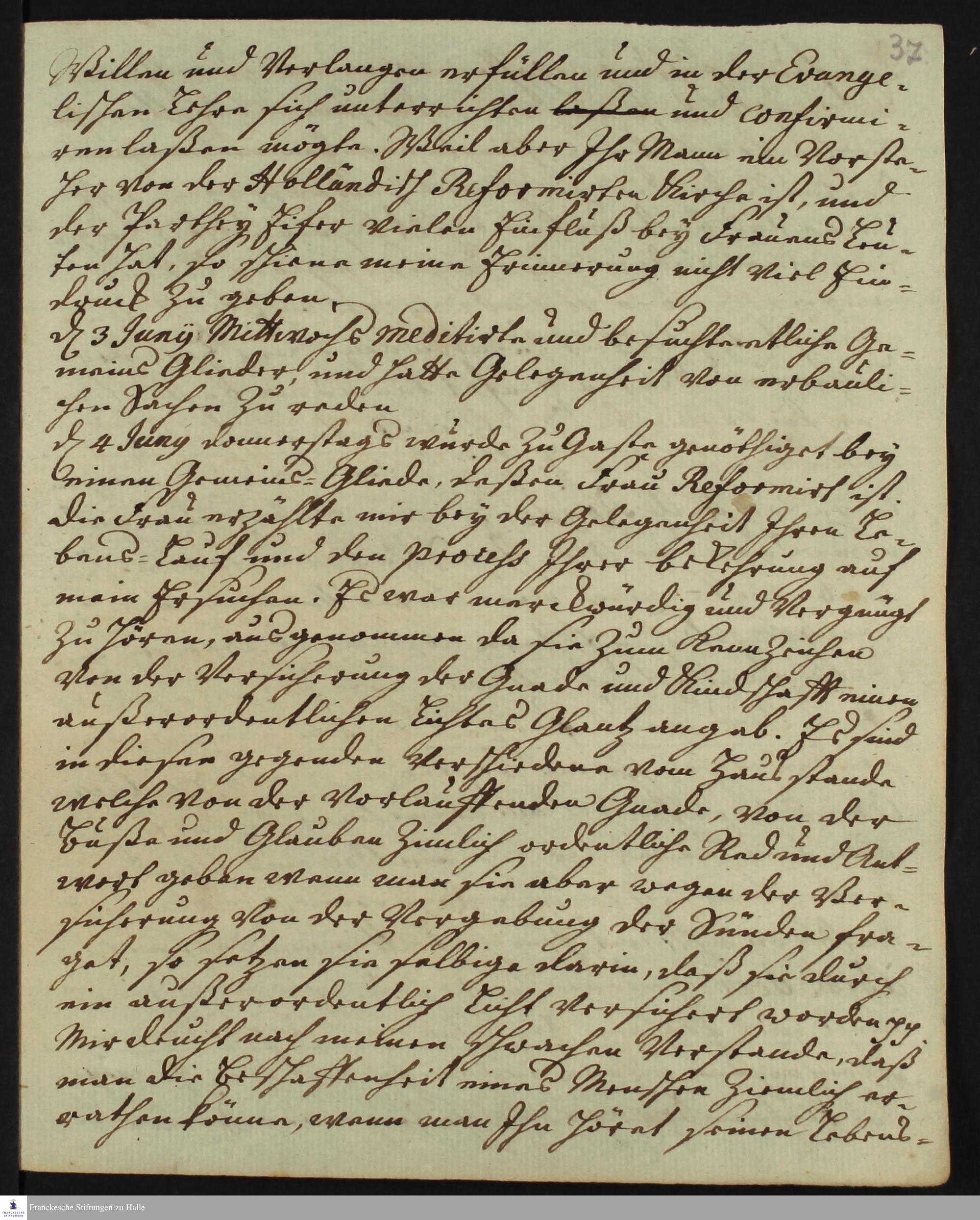 Fragment des Reisetagebuchs von Heinrich Melchior Mühlenberg.