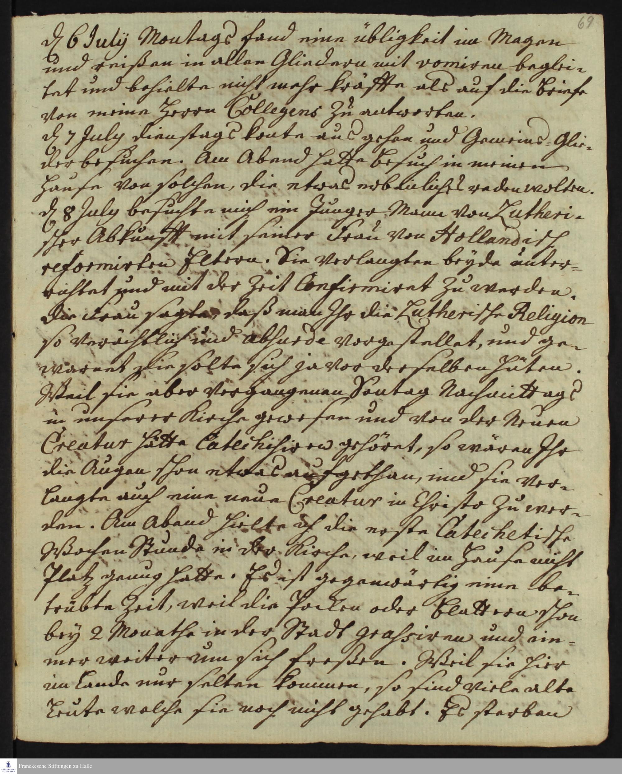 Fragment des Reisetagebuchs von Heinrich Melchior Mühlenberg.