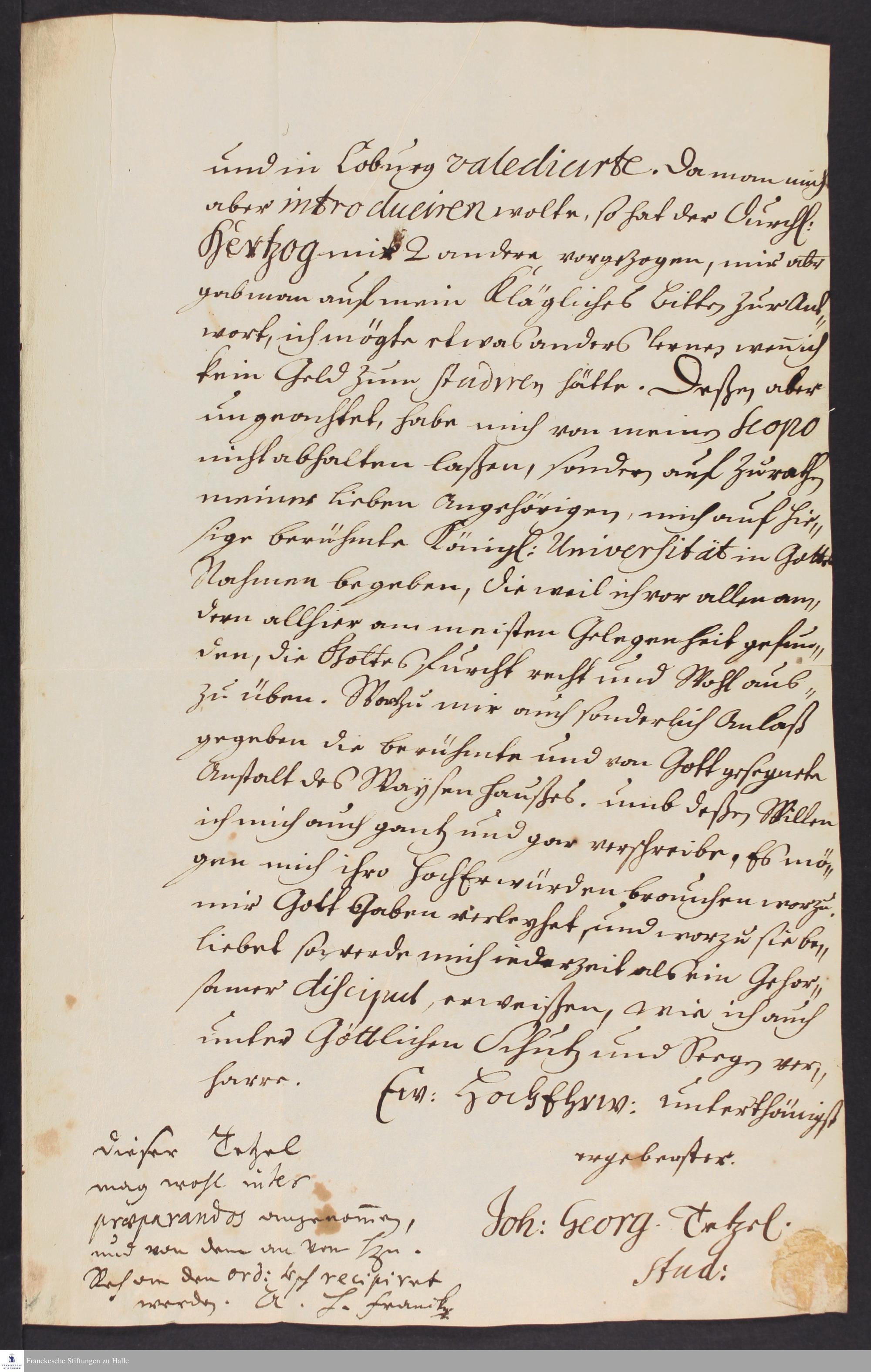 Brief von Johann Georg Tetzel an [Johann Michael] Hempel.