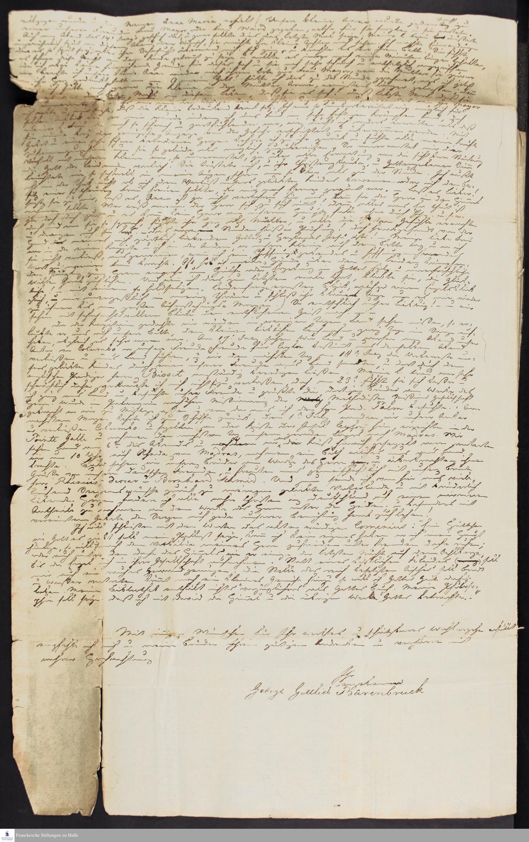 Brief von George Gottlieb Bärenbruck an Georg Christian Knapp.