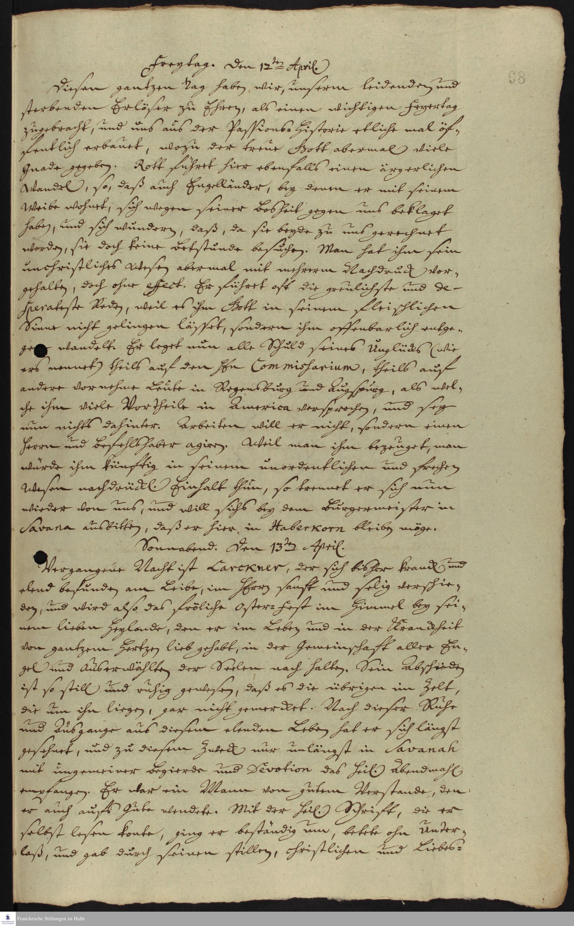 Tagebuch von Johann Martin Boltzius und Israel Christian Gronau.