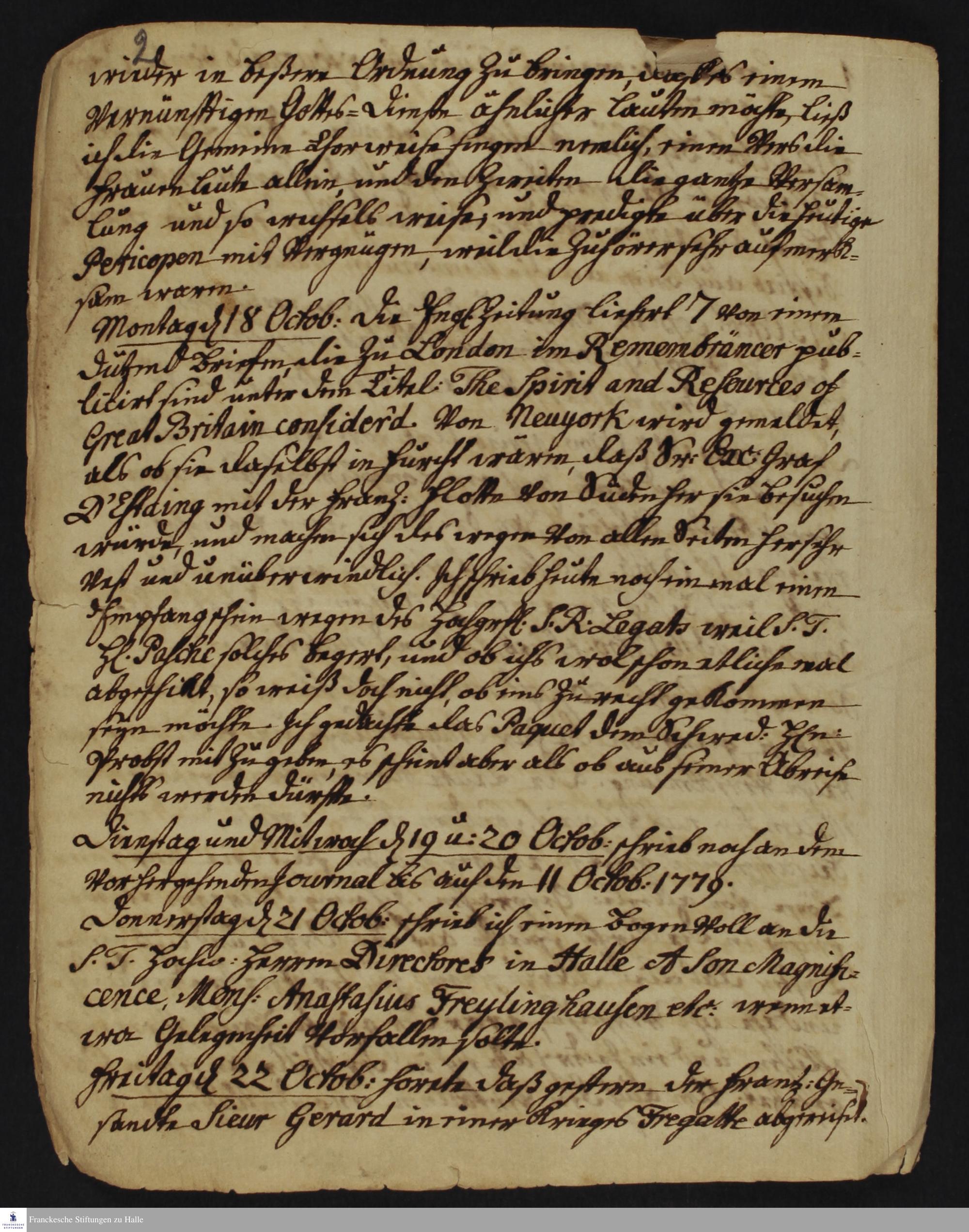 Tagebuch von Heinrich Melchior Mühlenberg.