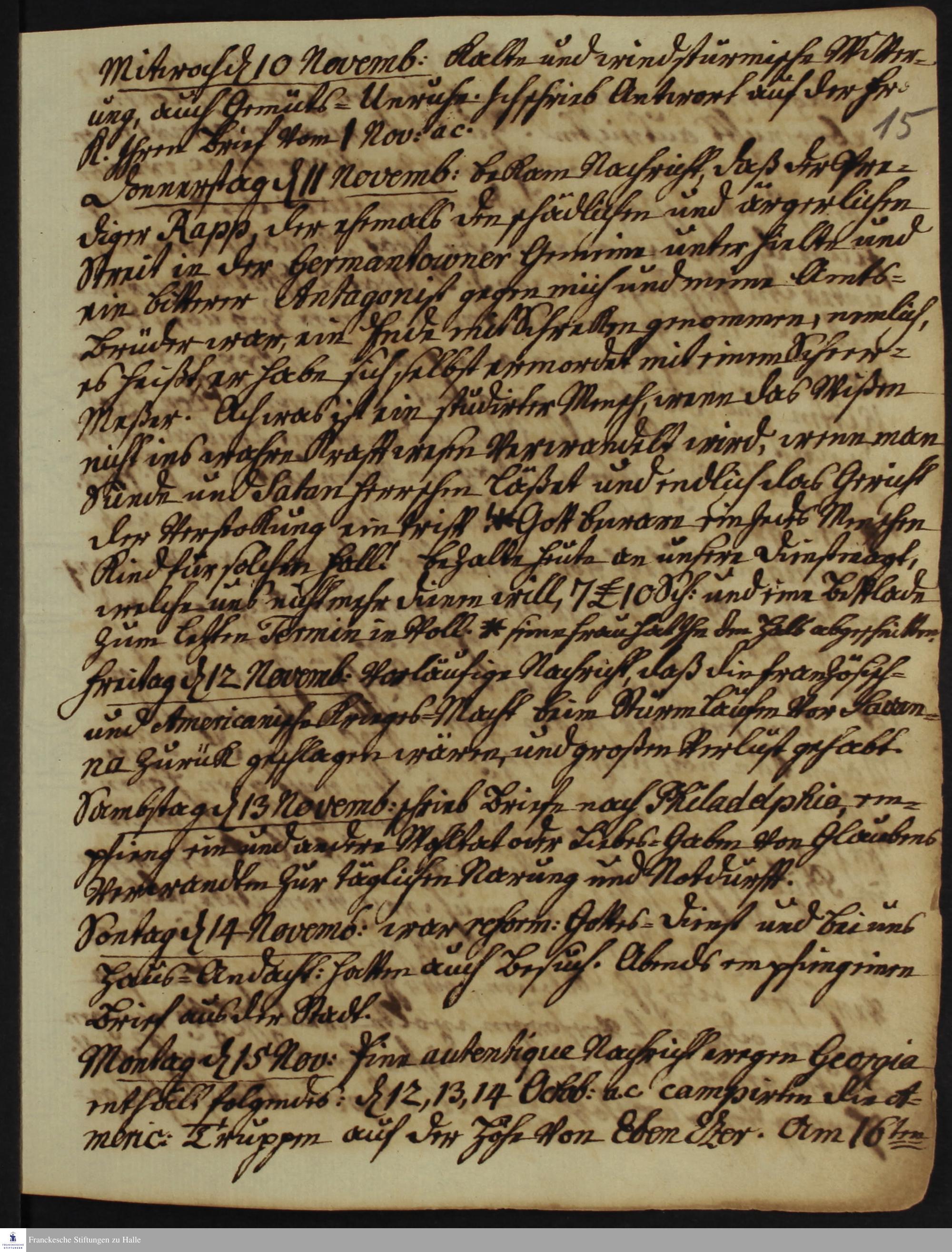 Tagebuch von Heinrich Melchior Mühlenberg.