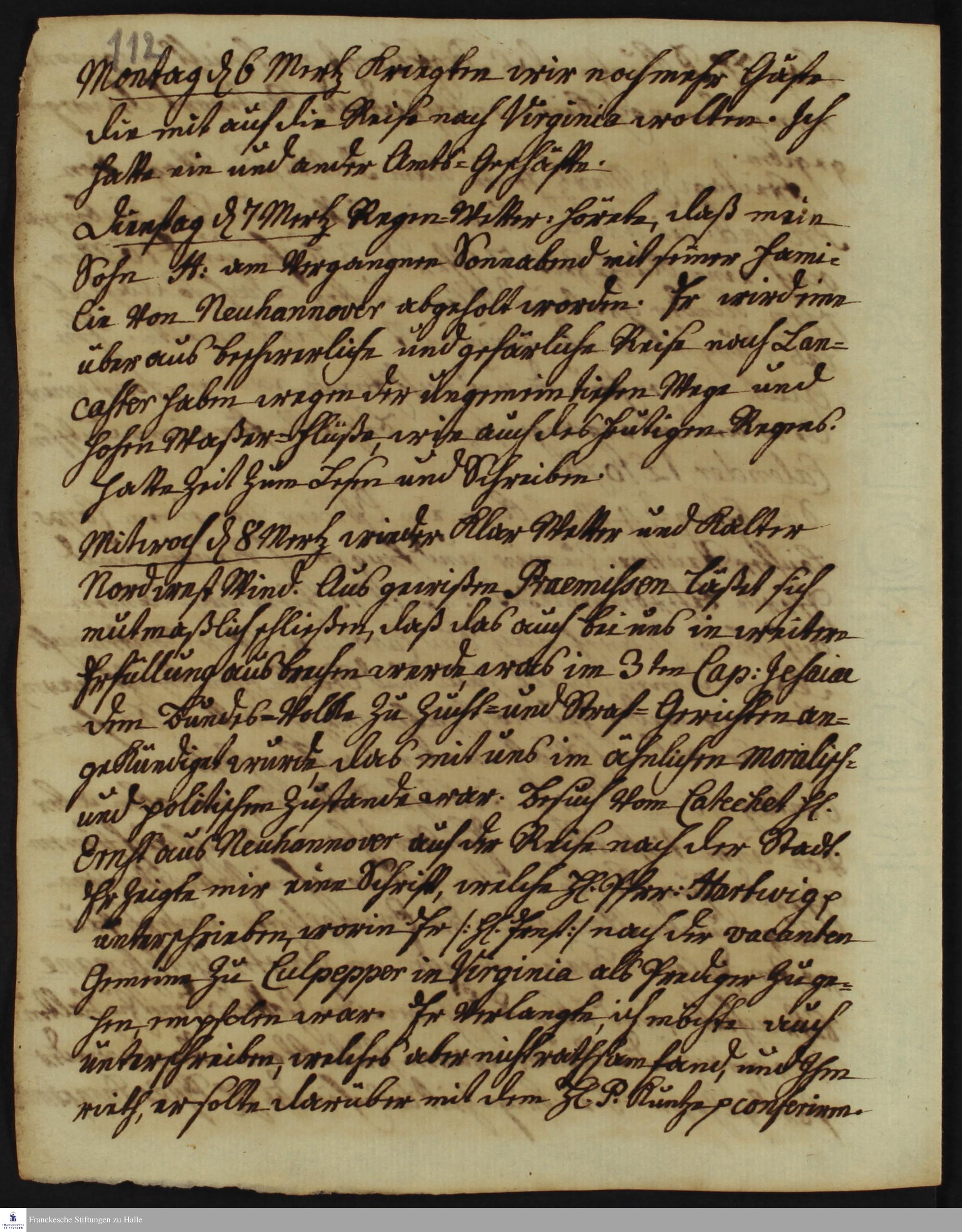 Tagebuch von Heinrich Melchior Mühlenberg.