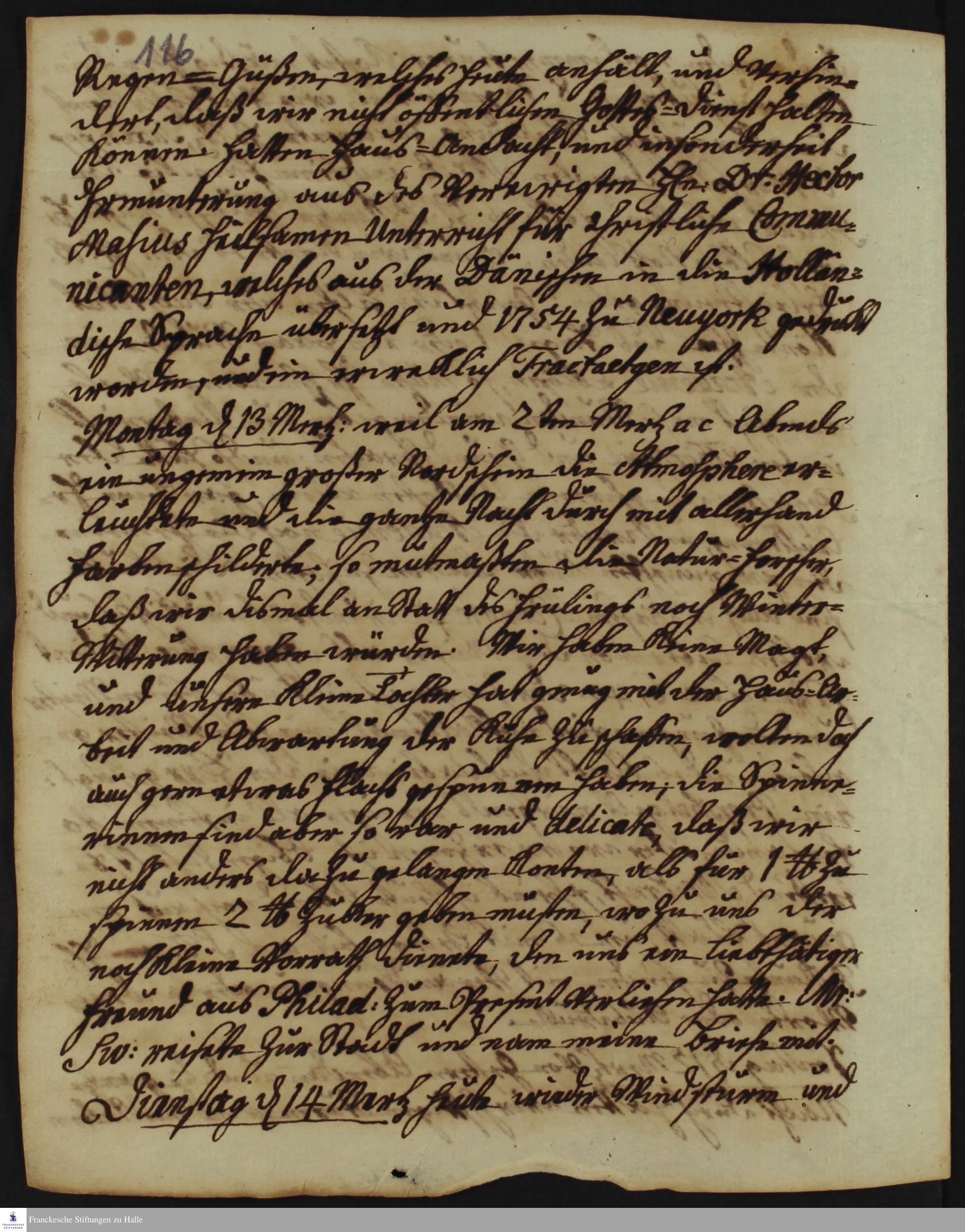 Tagebuch von Heinrich Melchior Mühlenberg.