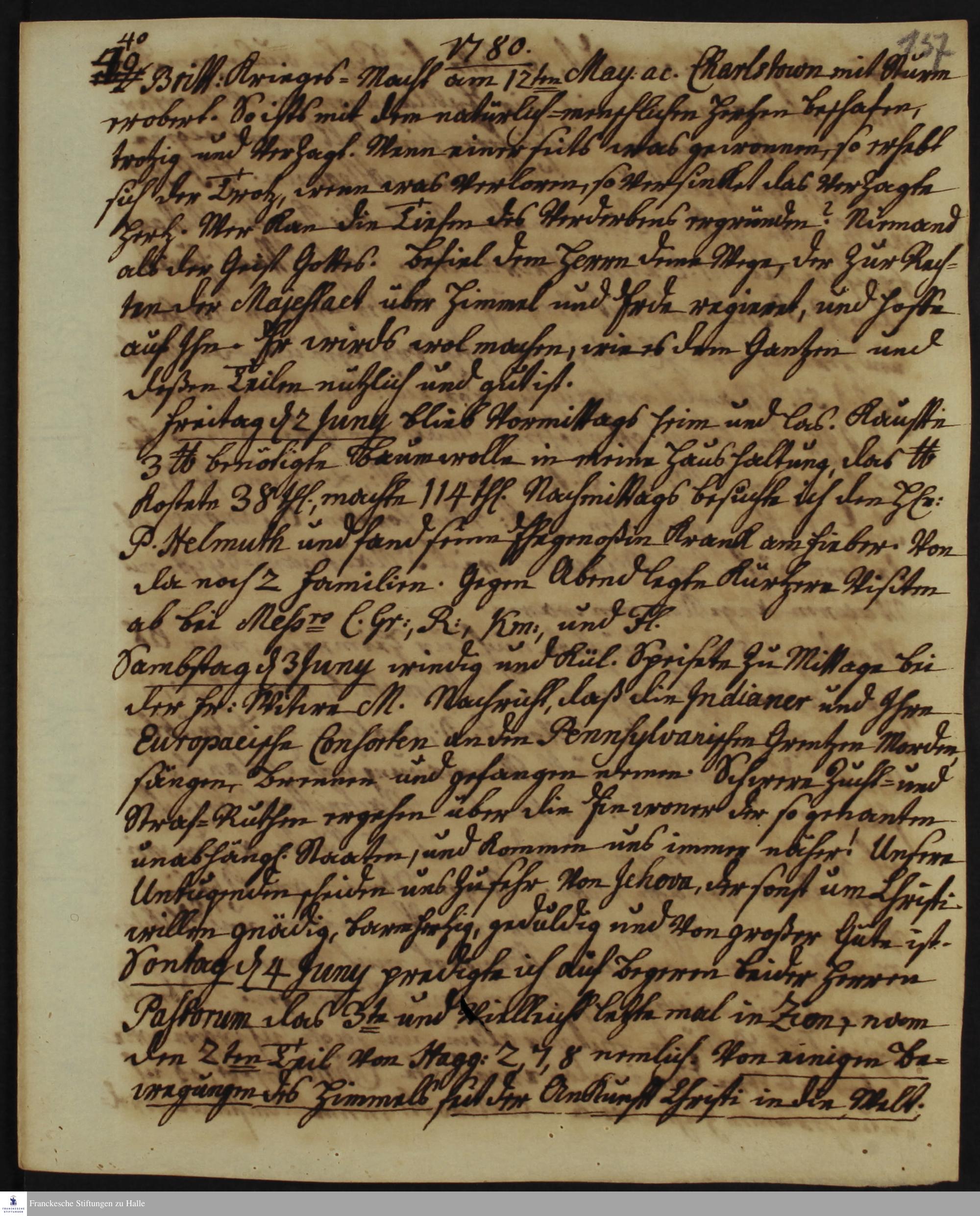 Tagebuch von Heinrich Melchior Mühlenberg.