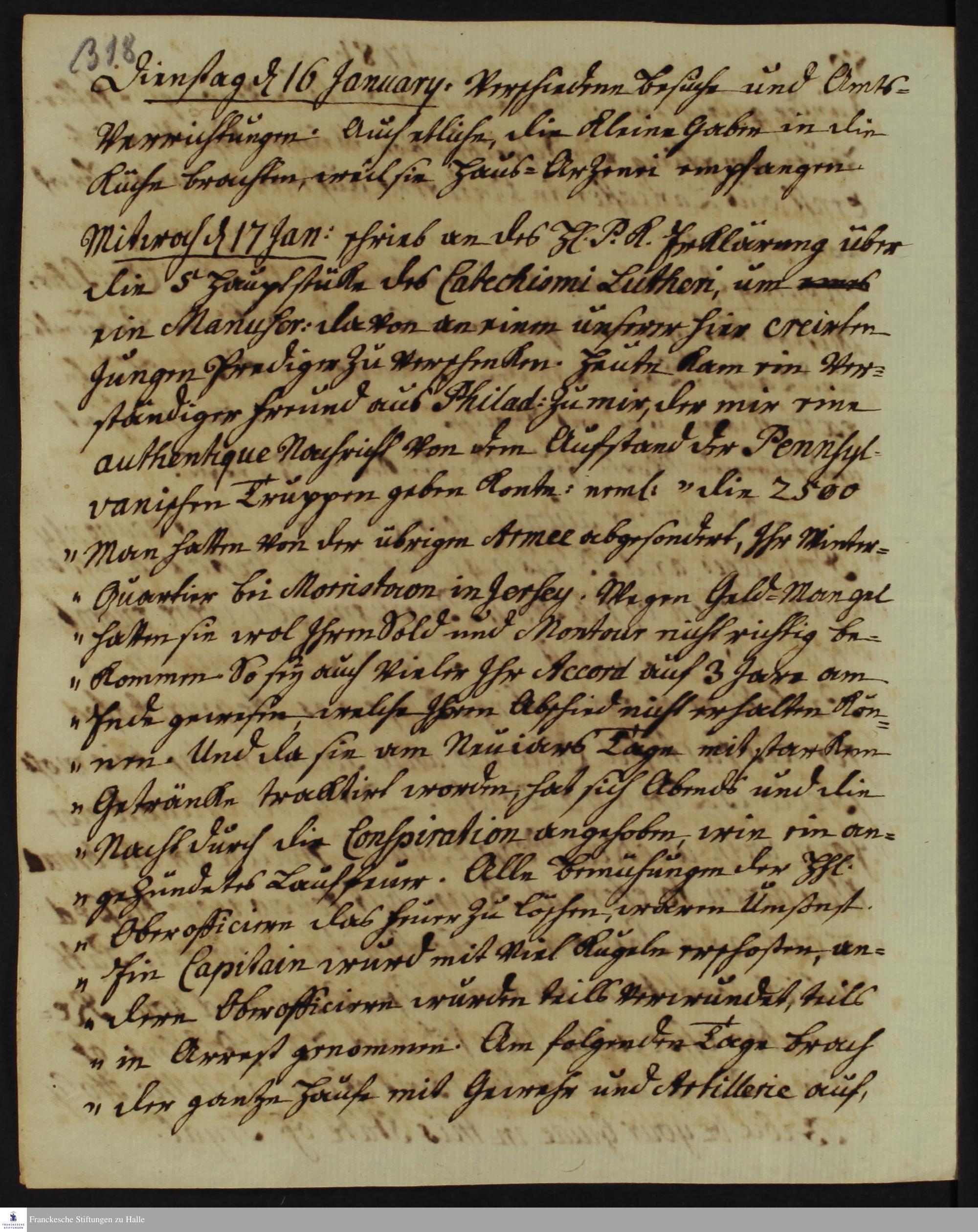 Tagebuch von Heinrich Melchior Mühlenberg.