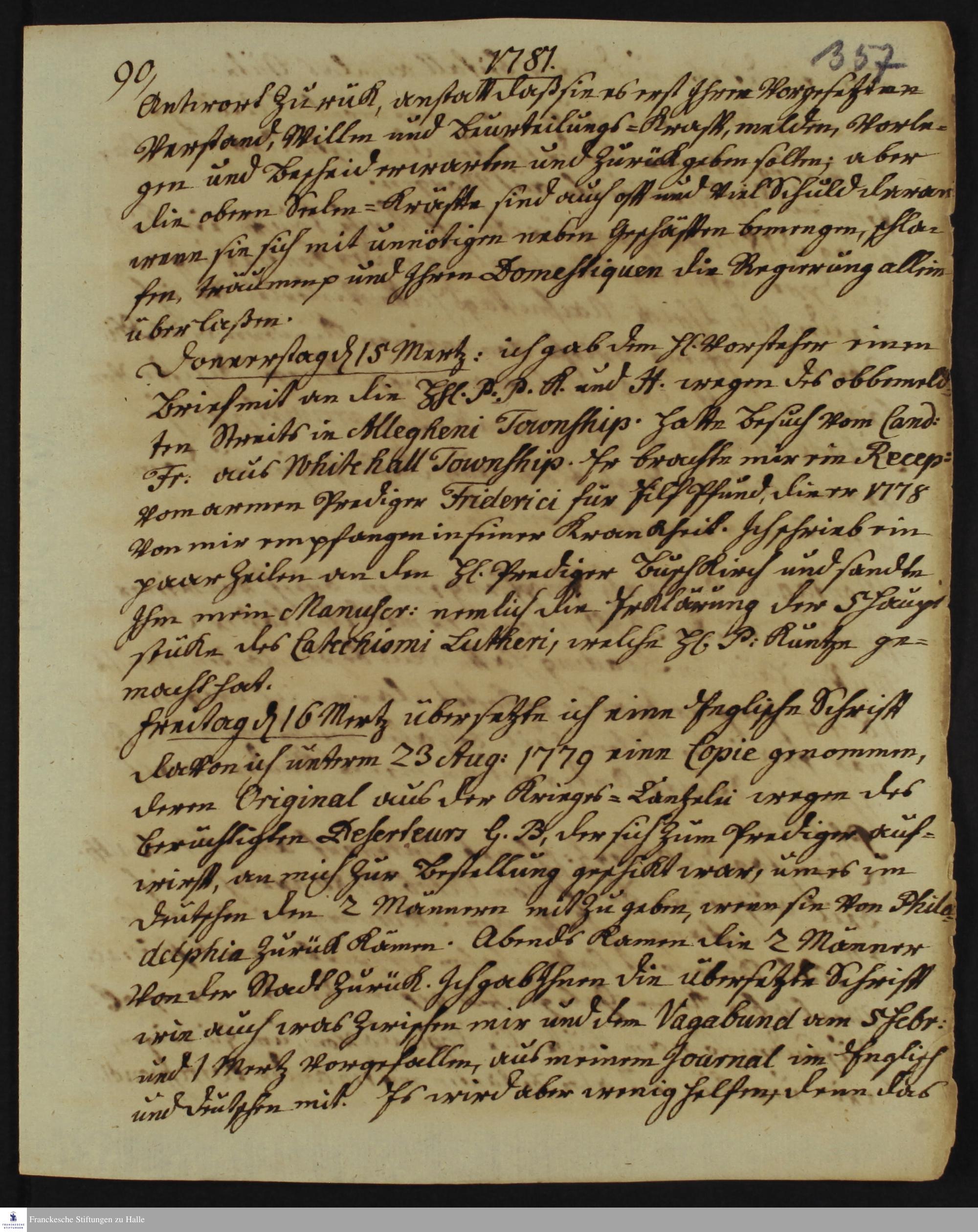 Tagebuch von Heinrich Melchior Mühlenberg.