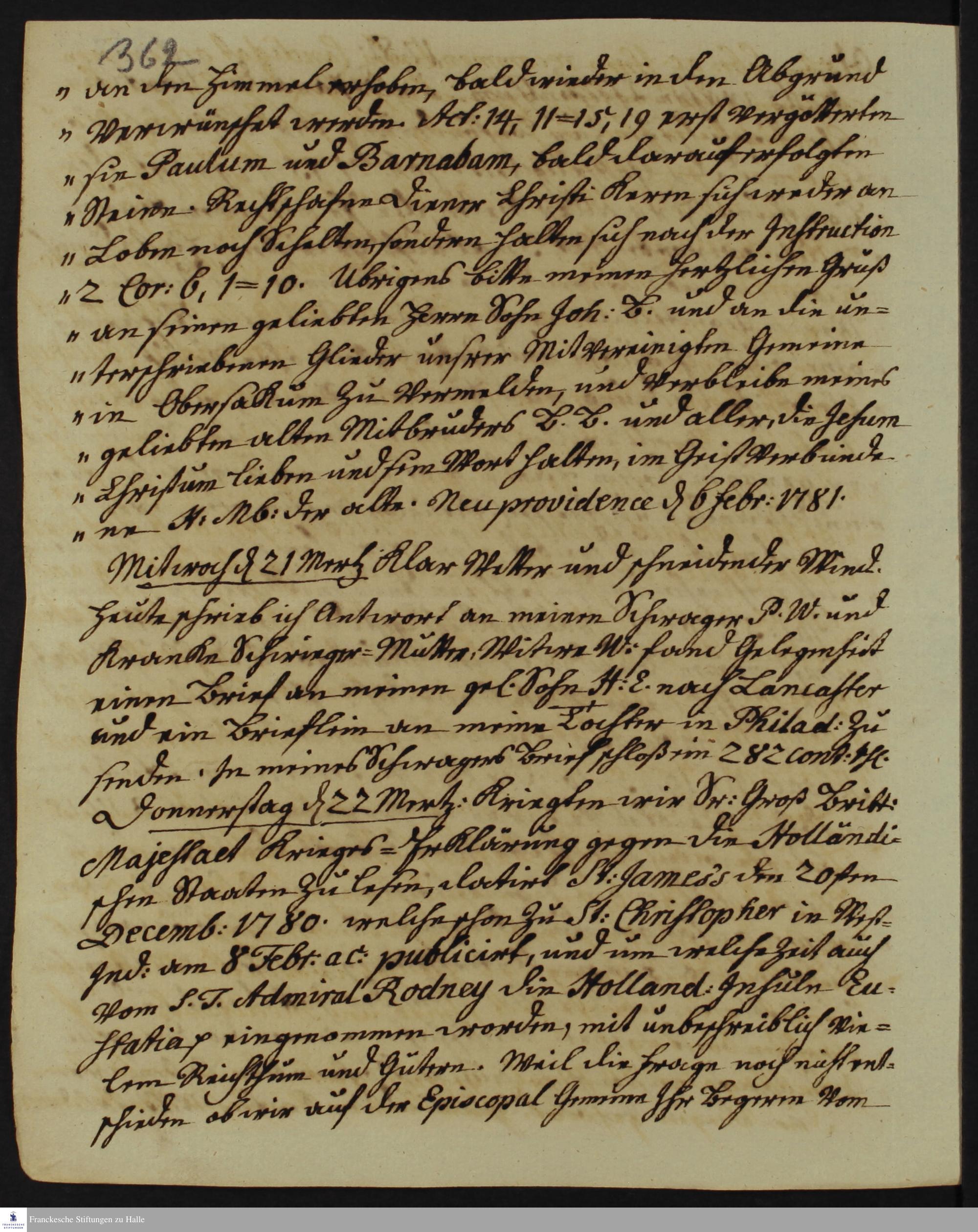 Tagebuch von Heinrich Melchior Mühlenberg.