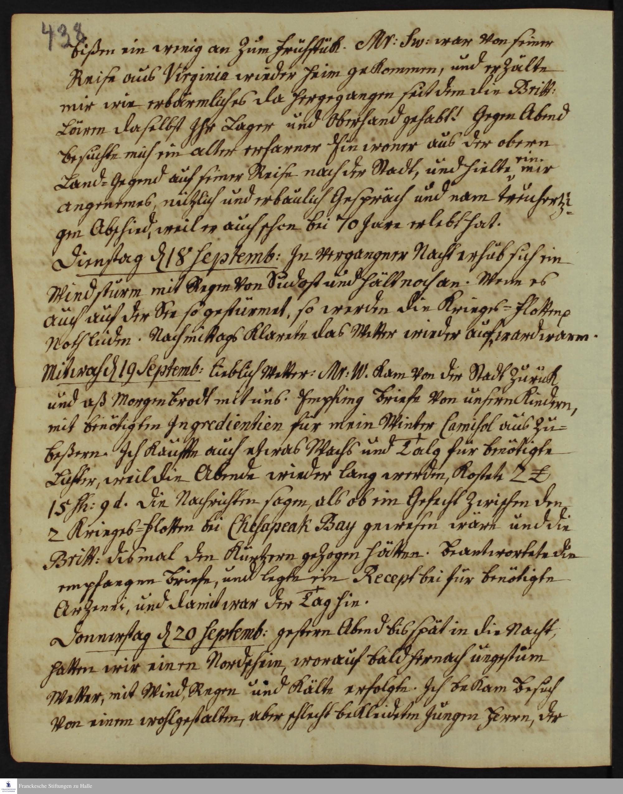 Tagebuch von Heinrich Melchior Mühlenberg.