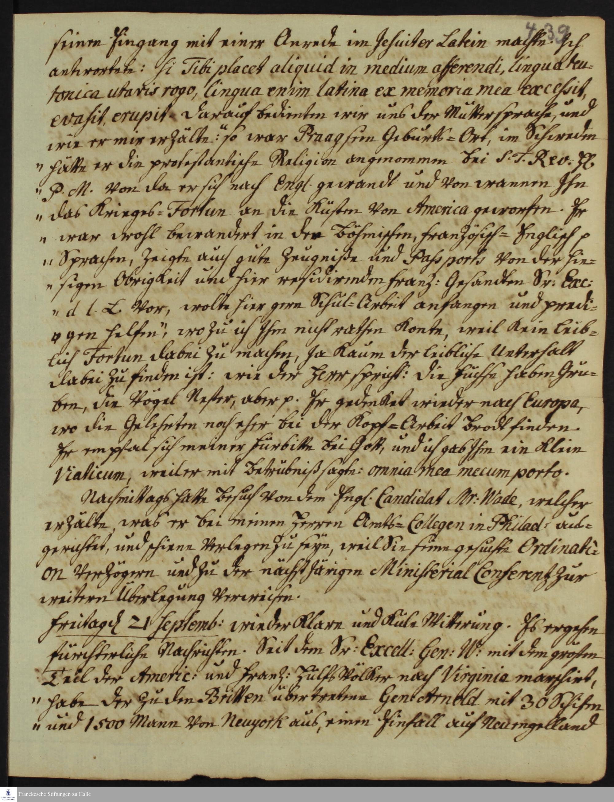 Tagebuch von Heinrich Melchior Mühlenberg.