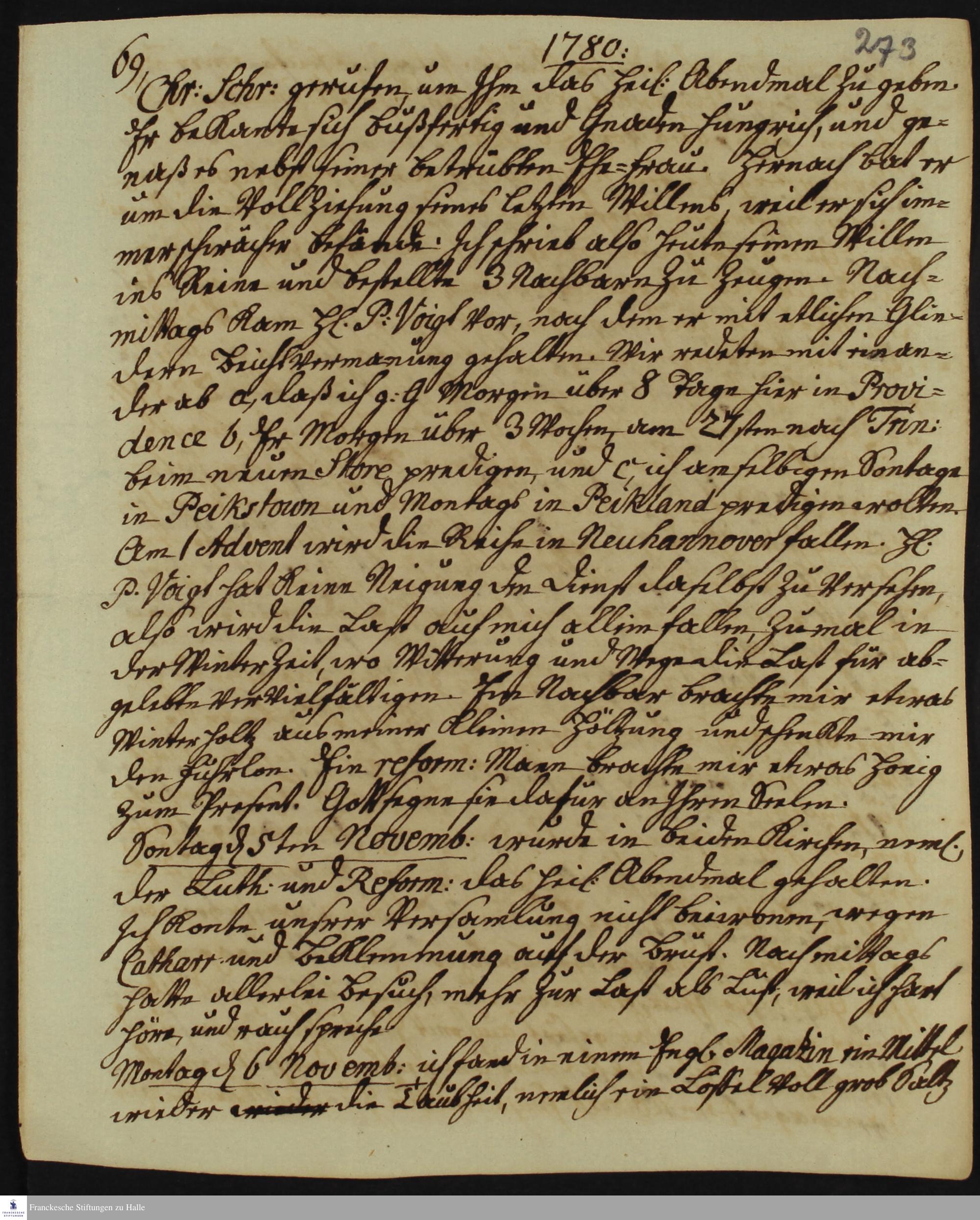 Tagebuch von Heinrich Melchior Mühlenberg.