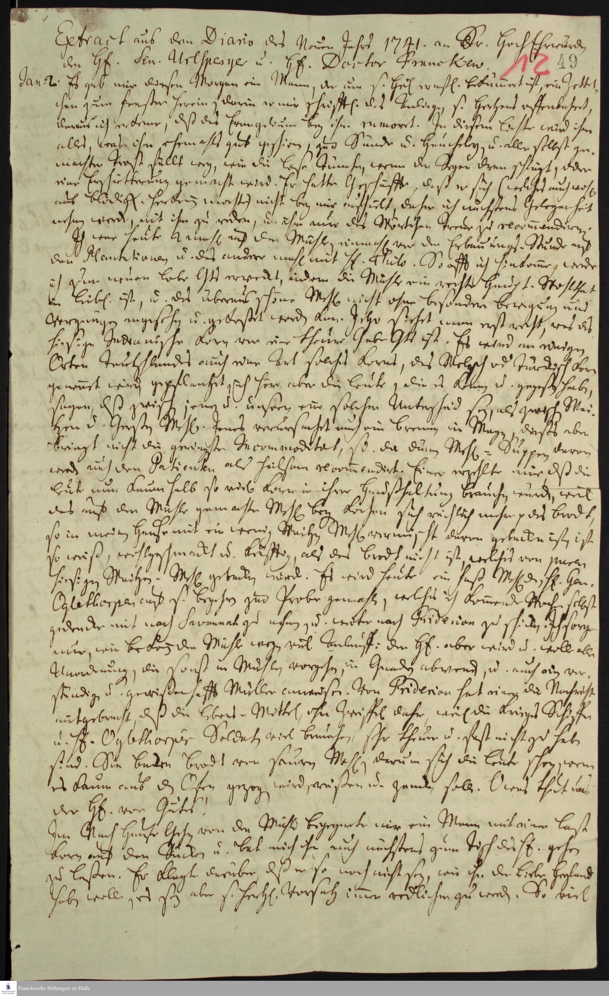 Auszug aus dem Tagebuch von Johann Martin Boltzius.