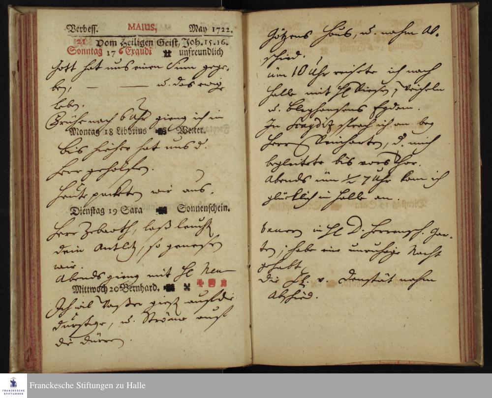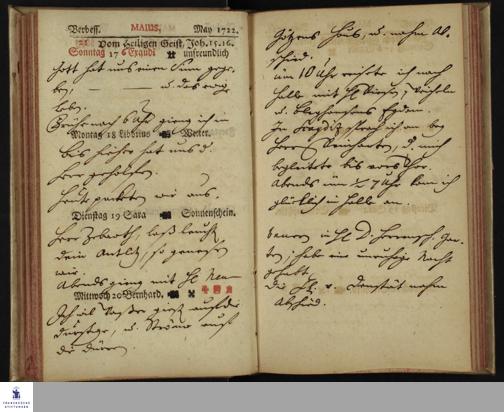 Schreibkalender von Heinrich Julius Elers. Mai 1722