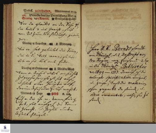 Schreibkalender von Heinrich Julius Elers. November 1723