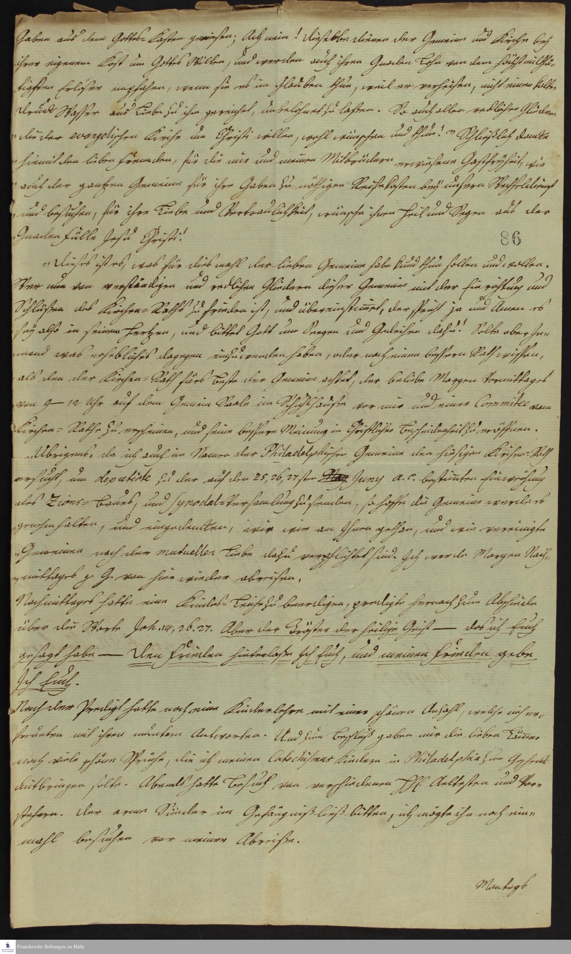 Reisetagebuch von Heinrich Melchior Mühlenberg.