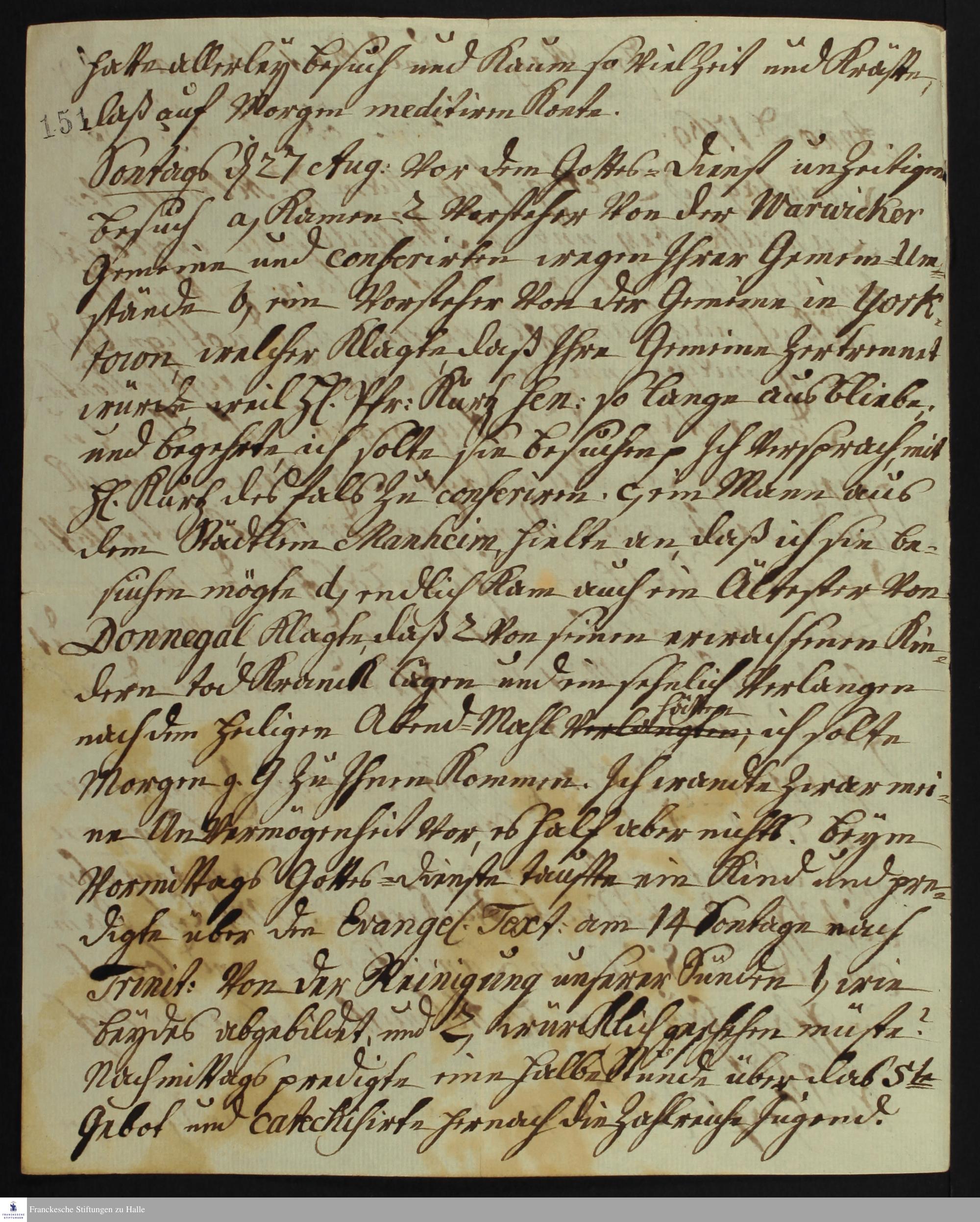 Reisetagebuch von Heinrich Melchior Mühlenberg.