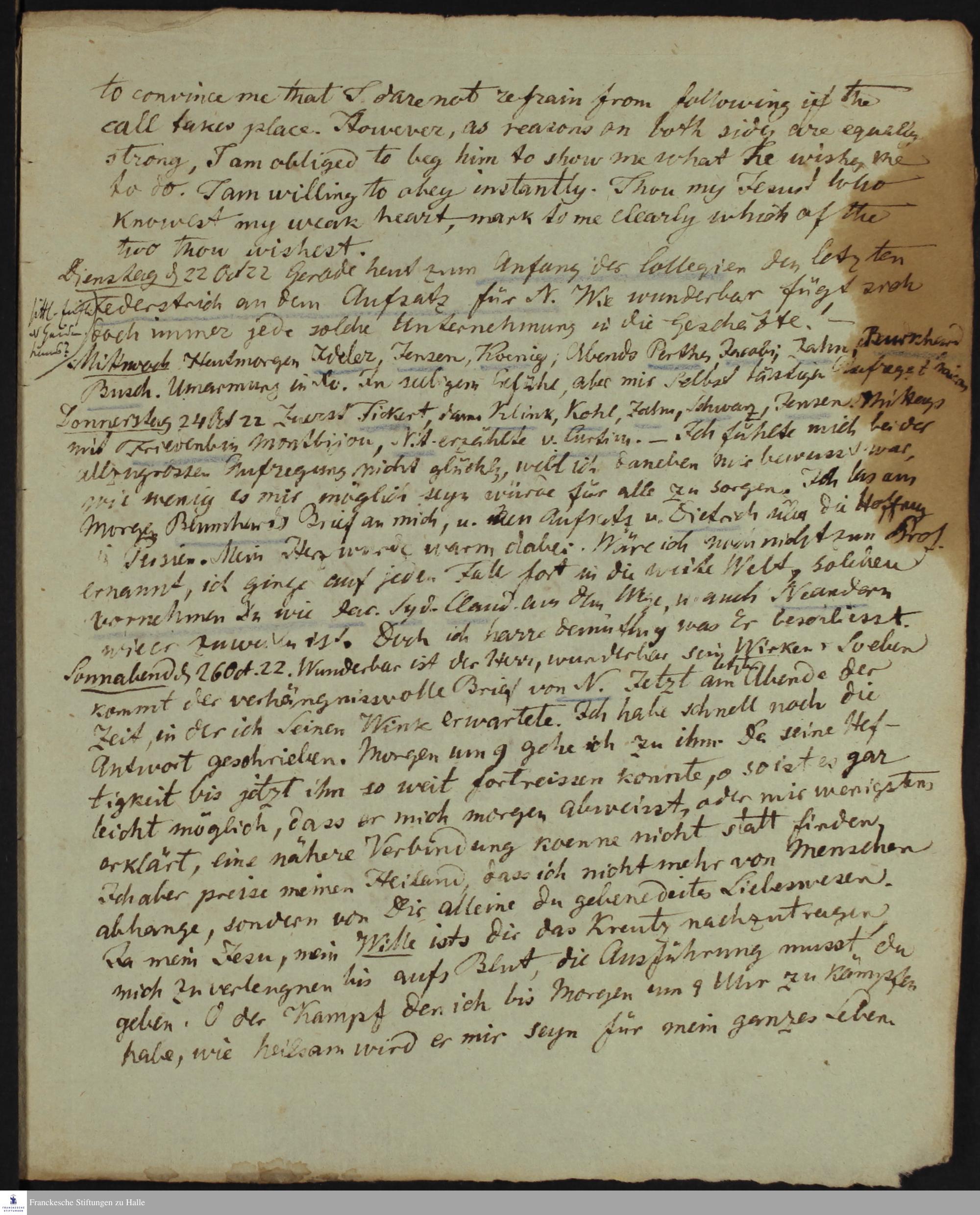 Tagebuch von August Tholuck.