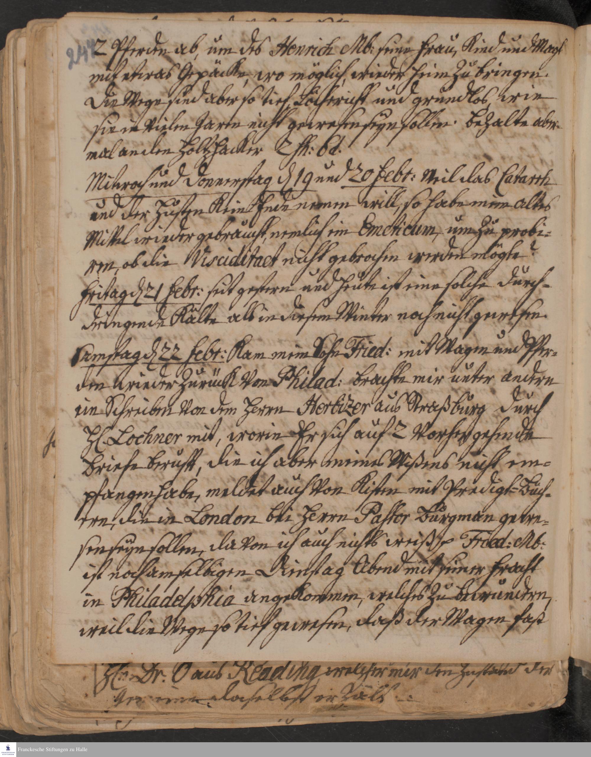 Tagebuch von Heinrich Melchior Mühlenberg.