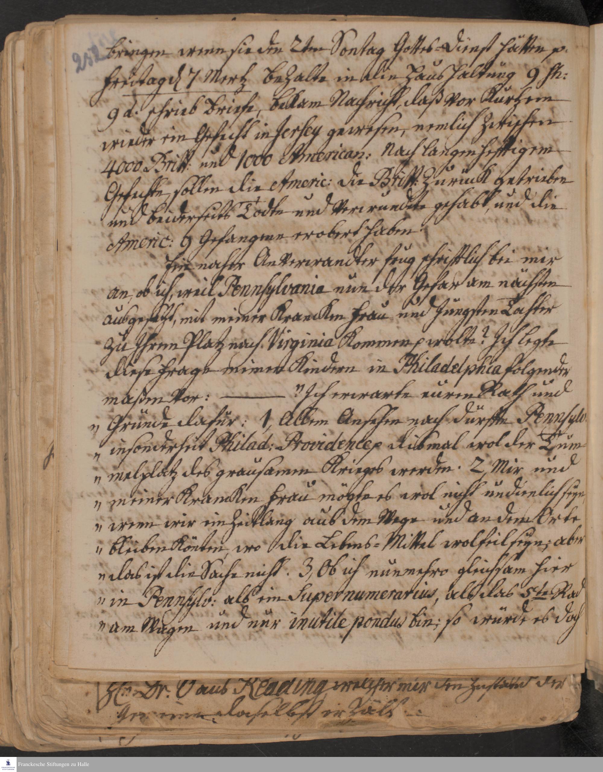 Tagebuch von Heinrich Melchior Mühlenberg.