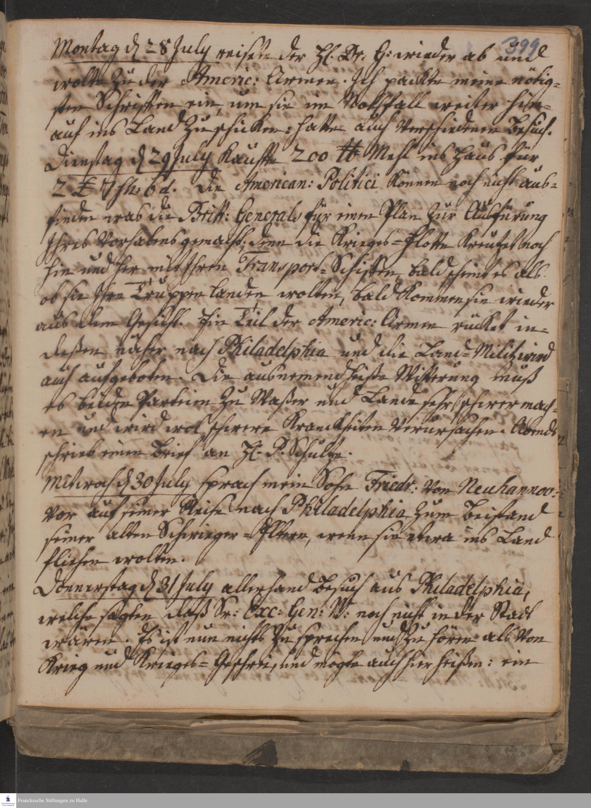 Tagebuch von Heinrich Melchior Mühlenberg.