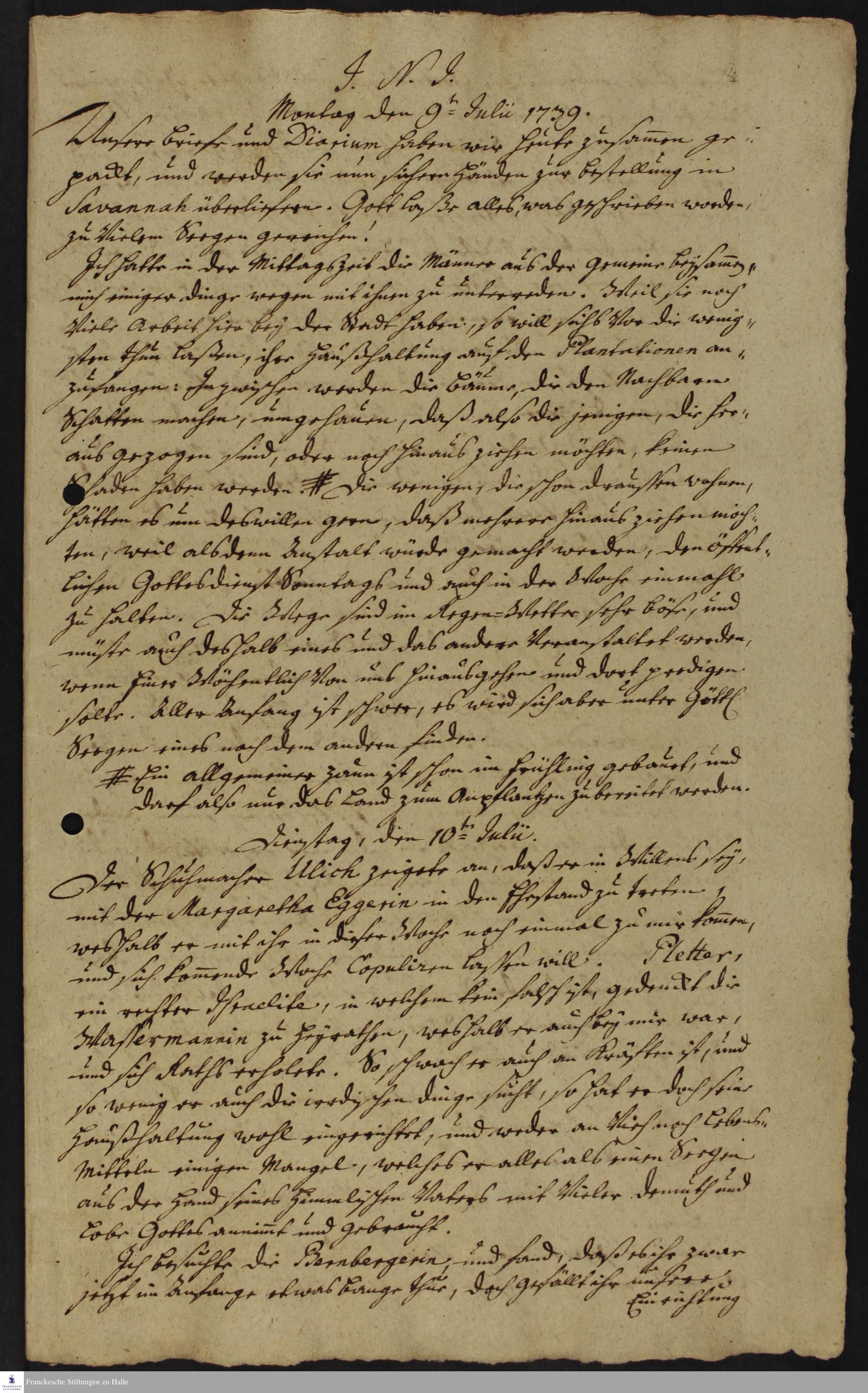 Auszug aus dem Tagebuch von Johann Martin Boltzius und Israel Christian Gronau.