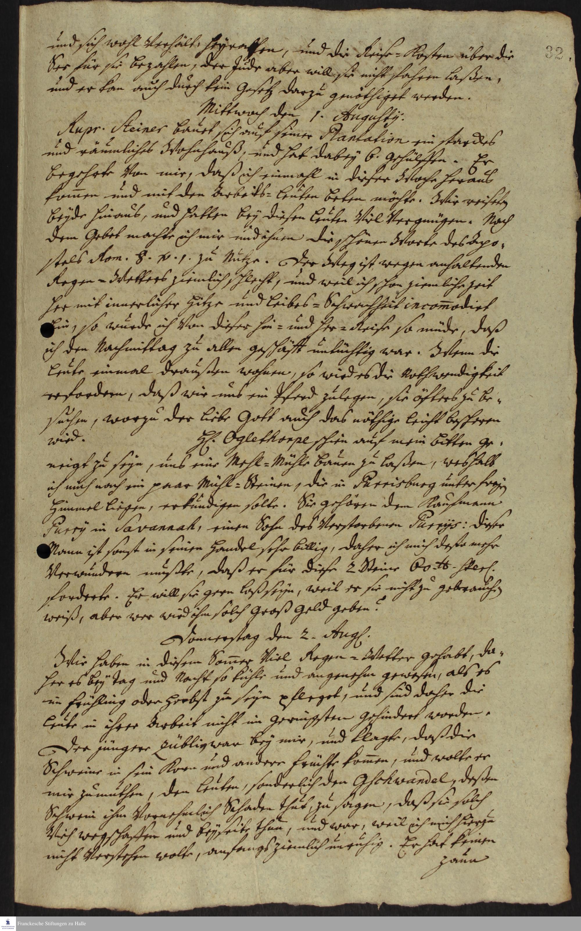 Auszug aus dem Tagebuch von Johann Martin Boltzius und Israel Christian Gronau.