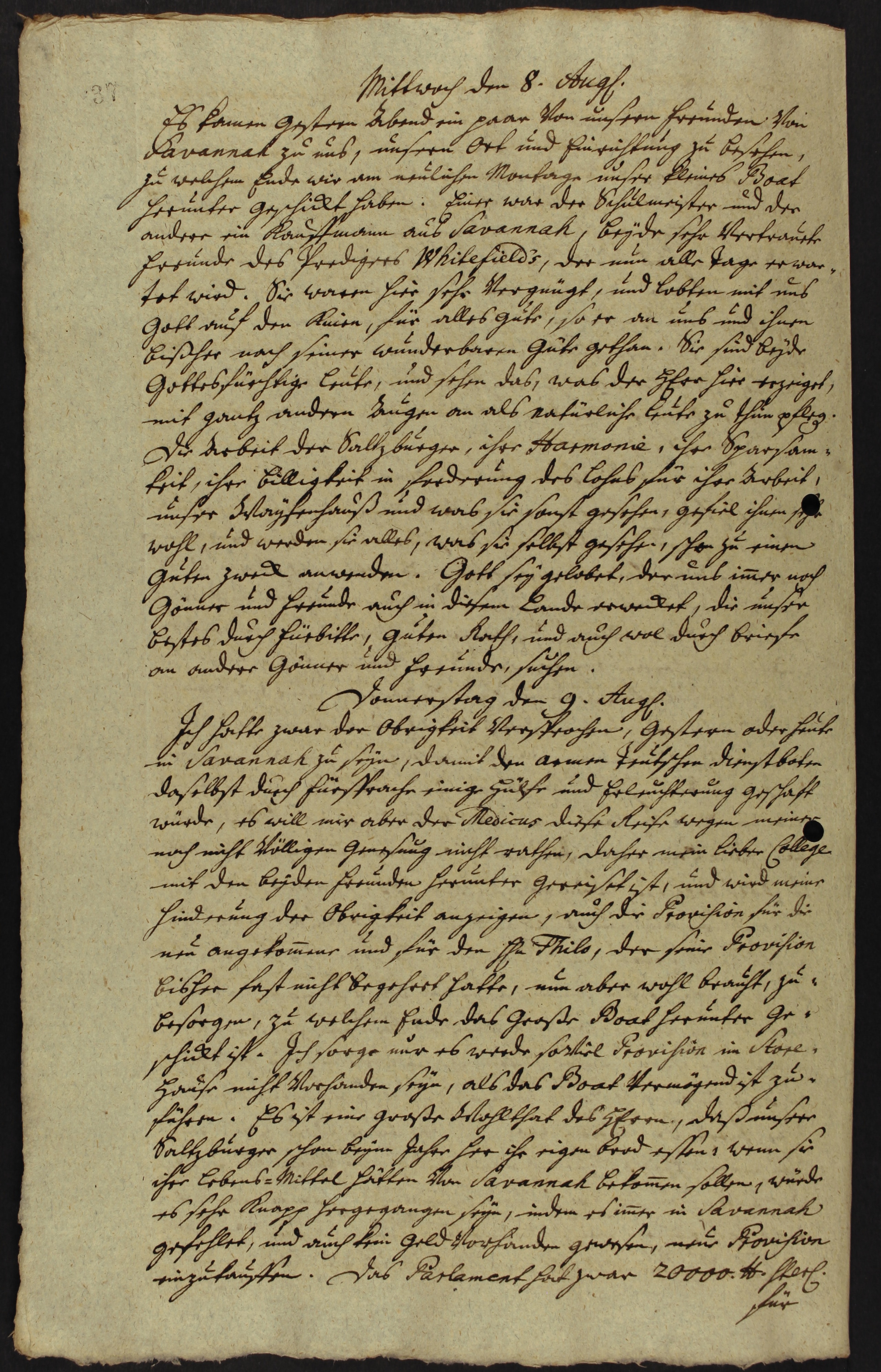 Auszug aus dem Tagebuch von Johann Martin Boltzius und Israel Christian Gronau.