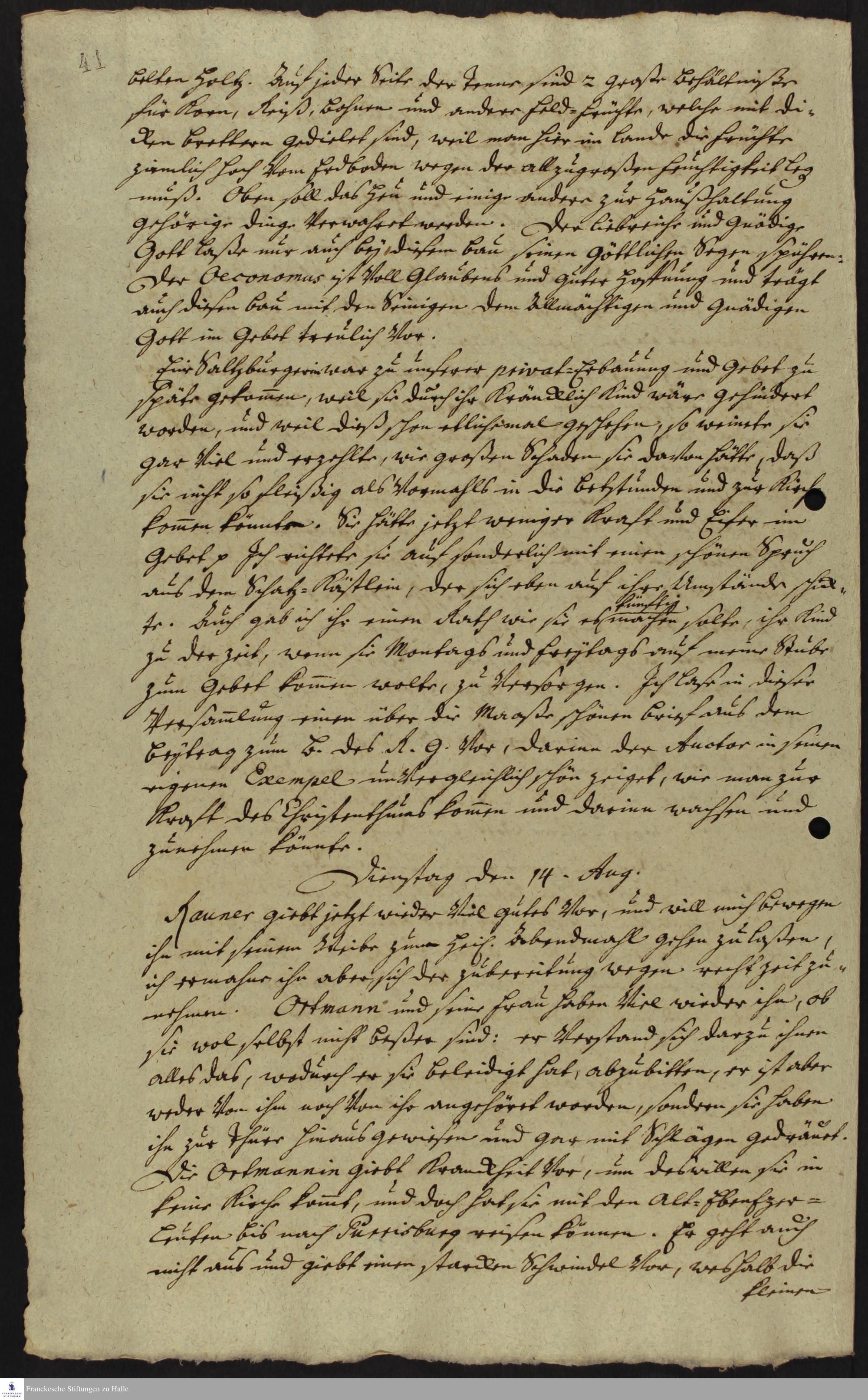 Auszug aus dem Tagebuch von Johann Martin Boltzius und Israel Christian Gronau.